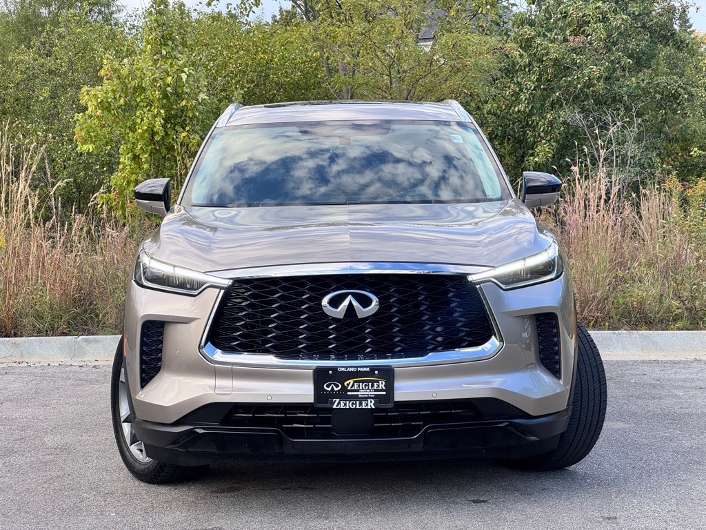 2024 INFINITI QX60 LUXE Warm Titanium *ONE OWNER, NAVIGATION SYSTEM, BACK-UP CAMERA, PANORAMIC ROOF, LEATHER, BLIND SPOT WARNING, BLUETOOTH, HEATED SEATS, CRUISE CONTROL, AROUND VIEW MONITOR W/MOVING OBJECT DETECTION, 3rd row seats: bench, 9 Speakers, Alloy wheels, AM/FM radio: SiriusXM, Apple CarPlay/Android Auto, Auto High-beam Headlights, Automatic temperature control, Brake assist, Climate Controlled Front Bucket Seats, Delay-off headlights, Electronic Stability Control, Exterior Parking Camera Rear, Front dual zone A/C, Fully automatic headlights, Heated front seats, Leather Shift Knob, Leather steering wheel, Leather-Appointed Seating Surfaces, Memory seat, Navigation system: INFINITI InTouch Navigation, Power driver seat, Power Liftgate, Power moonroof, Power passenger seat, Premium Paint - Warm Titanium, Radio: AM/FM Audio System, Rain sensing wipers, Rear air conditioning, Rear window defroster, Rear window wiper, Reclining 3rd row seat, Remote keyless entry, Speed control, Speed-Sensitive Wipers, Split folding rear seat, Steering wheel memory, Steering wheel mounted audio controls, Telescoping steering wheel, Tilt steering wheel, Variably intermittent wipers, Ventilated front seats, Wheels: 20" x 8J Sporty Machined Aluminum Alloy. 21/26 City/Highway MPG
