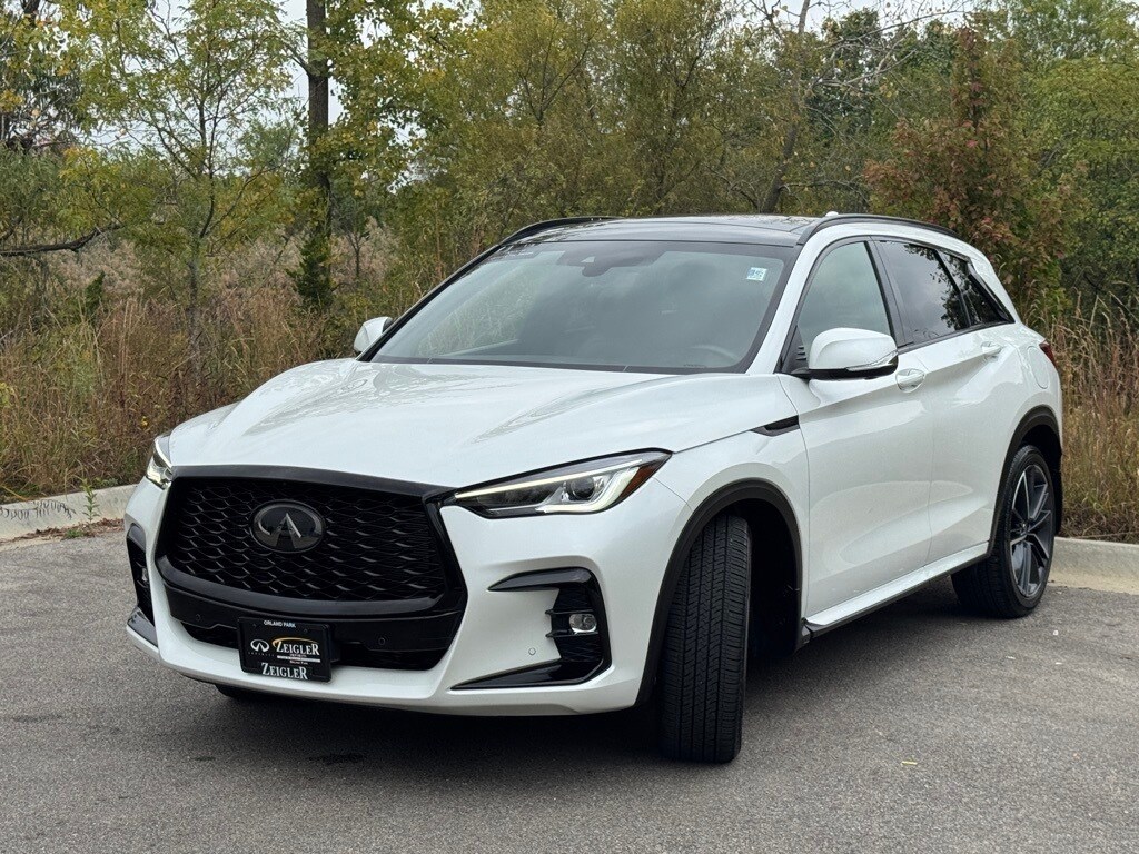 Recent Arrival! 2025 INFINITI QX50 SPORT Radiant White *ONE OWNER, NAVIGATION SYSTEM, BACK-UP CAMERA, PANORAMIC ROOF, LEATHER, AWD, BLIND SPOT WARNING, BLUETOOTH, HEATED SEATS, CRUISE CONTROL, AROUND VIEW MONITOR W/MOVING OBJECT DETECTION, 12 Speakers, Alloy wheels, AM/FM radio: SiriusXM, Auto High-beam Headlights, Automatic temperature control, Bose Premium Audio System, Brake assist, CD player, Climate Controlled Front Bucket Seats, Delay-off headlights, Electronic Stability Control, Exclusive Paint - Radiant White, Exterior Parking Camera Rear, Front dual zone A/C, Front fog lights, Fully automatic headlights, Garage door transmitter: HomeLink, Heated front seats, Heated steering wheel, Illuminated Kick Plates, Leather Shift Knob, Leather steering wheel, Memory seat, Navigation system: INFINITI InTouch Navigation, Power driver seat, Power Liftgate, Power moonroof, Power passenger seat, Rear window defroster, Rear window wiper, Remote keyless entry, Semi-Aniline Leather-Appointed Seat Trim, Speed control, Speed-Sensitive Wipers, Splash Guards (Set of 4), Split folding rear seat, Steering wheel mounted audio controls, Telescoping steering wheel, Tilt steering wheel, Variably intermittent wipers, Ventilated front seats, Wheels: 20" Dark-Painted Machine-Finished Alloy. 22/28 City/Highway MPG