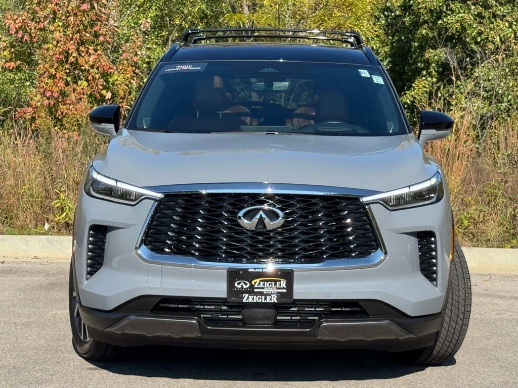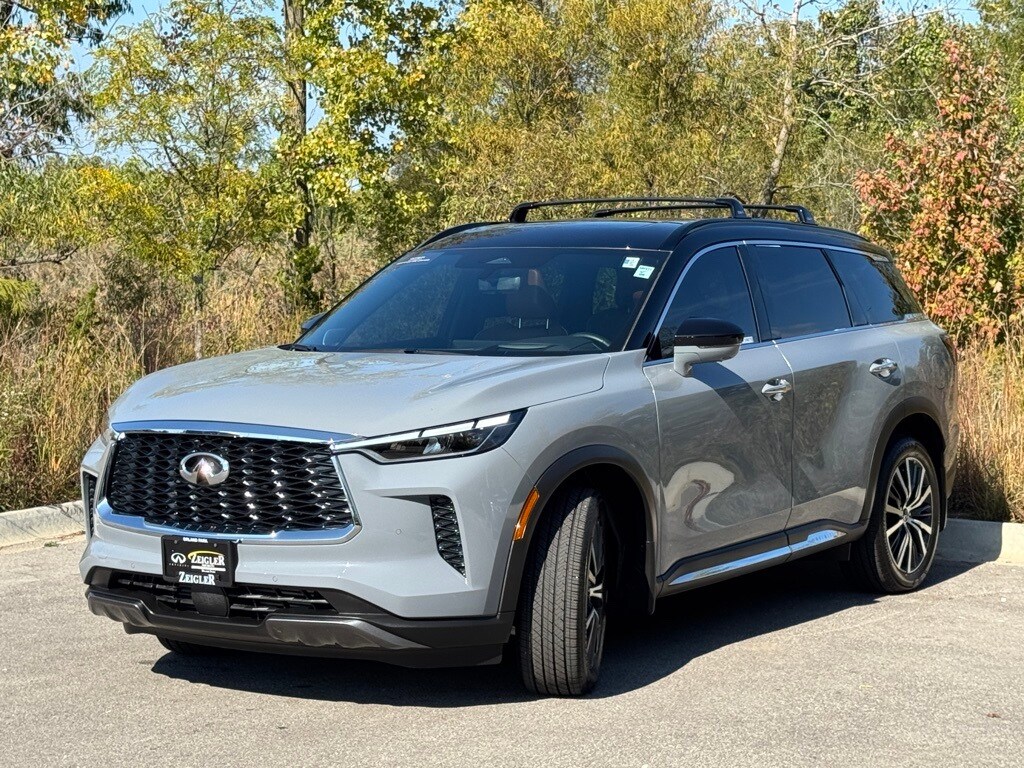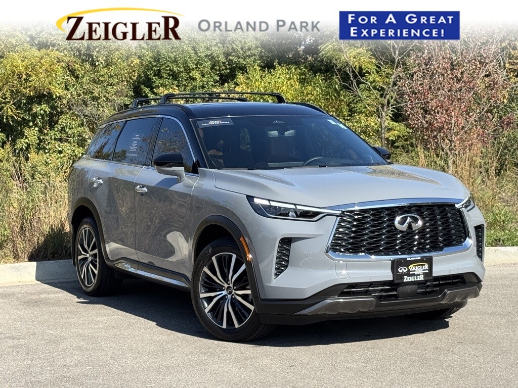 Recent Arrival! 2025 INFINITI QX60 Autograph Harbor Gray/Obsidian Black *ONE OWNER, NAVIGATION SYSTEM, BACK-UP CAMERA, PANORAMIC ROOF, LEATHER, AWD, BLIND SPOT WARNING, BLUETOOTH, HEATED SEATS, CRUISE CONTROL, TRAILER TOW PACKAGE, AROUND VIEW MONITOR W/MOVING OBJECT DETECTION, 17 Speakers, 3rd row seats: bench, Alloy wheels, AM/FM radio: SiriusXM, Apple CarPlay/Android Auto, Auto High-beam Headlights, Automatic temperature control, Bose Performance Series 17-Speaker Sound System, Brake assist, Cargo Mat (Reversible), Cargo Net, Cargo Package, Climate Controlled Massaging Front Bucket Seats, Delay-off headlights, Electronic Stability Control, Exterior Parking Camera Rear, First Aid Kit, Front dual zone A/C, Fully automatic headlights, Garage door transmitter: HomeLink, Heads-Up Display, Heated front seats, Heated rear seats, Heated steering wheel, Illuminated Kick Plate, Leather Shift Knob, Leather steering wheel, Memory seat, Navigation system: INFINITI InTouch Navigation, Power driver seat, Power Liftgate, Power moonroof, Power passenger seat, Premium Paint, Radio: Bose Performance Series, Rain sensing wipers, Rear air conditioning, Rear window defroster, Rear window wiper, Reclining 3rd row seat, Remote keyless entry, Semi Aniline Leather-Appointed Seating Surfaces, Speed control, Speed-Sensitive Wipers, Splash Guards, Split folding rear seat, Steering wheel memory, Steering wheel mounted audio controls, Telescoping steering wheel, Tilt steering wheel, Variably intermittent wipers, Ventilated front seats, Wheels: 20" x 8J Luxury Machined Aluminum Alloy. 22/27 City/Highway MPG