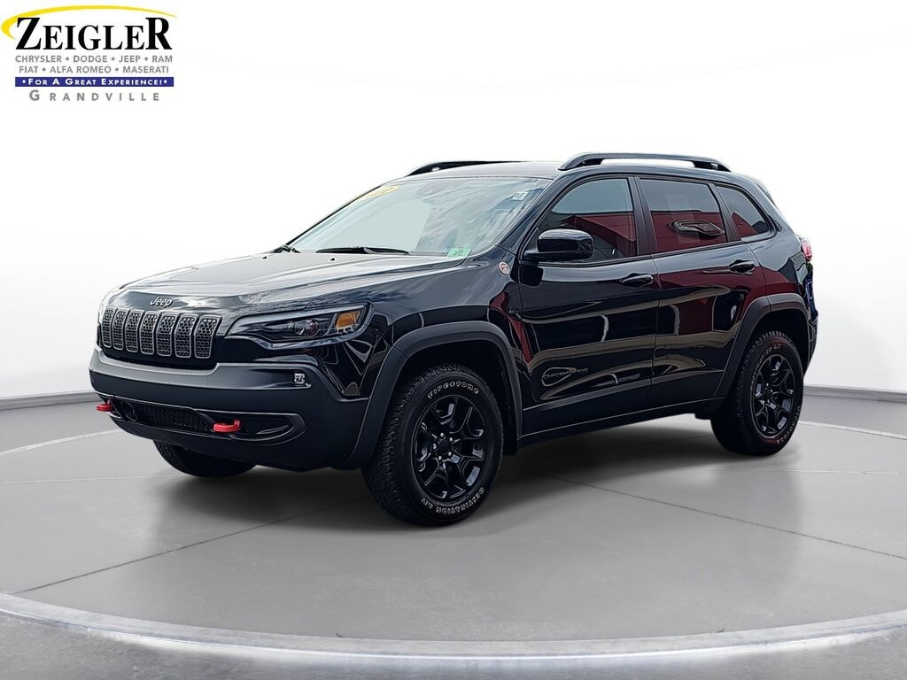 Recent Arrival! Certified. 2022 Jeep Cherokee Trailhawk Diamond Black Crystal Pearlcoat 3.517 Final Drive Ratio, 4-Wheel Disc Brakes, 4G LTE Wi-Fi Hot Spot, 6 Speakers, 7 & 4 Pin Wiring Harness, 8.4" Touchscreen Display, ABS brakes, Air Conditioning, Alloy wheels, AM/FM radio: SiriusXM, Anti-whiplash front head restraints, Apple CarPlay, Apple CarPlay/Android Auto, Auto-Dimming Rear-View Mirror, Automatic temperature control, Brake assist, Class III Receiver Hitch, Cloth/Premium Vinyl Bucket Seats, Comfort/Convenience Group, Compass, Delay-off headlights, Driver door bin, Driver vanity mirror, Dual front impact airbags, Dual front side impact airbags, Electronic Stability Control, For Details, Visit DriveUconnect.com, For More Info, Call 800-643-2112, Four wheel independent suspension, Front anti-roll bar, Front Bucket Seats, Front Center Armrest, Front dual zone A/C, Front fog lights, Front reading lights, Fully automatic headlights, Google Android Auto, GPS Antenna Input, Hands-Free Power Liftgate, Heated door mirrors, Heated front seats, Heated steering wheel, Illuminated entry, K-Black Door Trim Panel Appliques, K-Black Interior Accents, Knee airbag, Leather Shift Knob, Low tire pressure warning, Occupant sensing airbag, Off Road Suspension, Outside temperature display, Overhead airbag, Overhead console, Panic alarm, ParkView Rear Back-Up Camera, Passenger door bin, Passenger vanity mirror, Power door mirrors, Power driver seat, Power steering, Power windows, Quick Order Package 27E, Radio data system, Radio: Uconnect 4 w/8.4" Display, Rain sensing wipers, Rear anti-roll bar, Rear reading lights, Rear seat center armrest, Rear side impact airbag, Rear window defroster, Rear window wiper, Remote keyless entry, Roof rack: rails only, Security Alarm, SiriusXM Radio Service, SiriusXM Satellite Radio, Speed control, Speed-sensing steering, Split folding rear seat, Spoiler, Steering wheel mounted audio controls, Tachometer, Telescoping steering wheel, Tilt steering wheel, Traction control, Trailer Tow Group, Trailer Tow Wiring Harness, Trip computer, Turn signal indicator mirrors, Universal Garage Door Opener, USB Host Flip, Variably intermittent wipers, Voltmeter, Wheels: 17" x 7.5" Black Painted Aluminum, Wheels: 17" x 7.5" Painted Diamond Cut Aluminum.