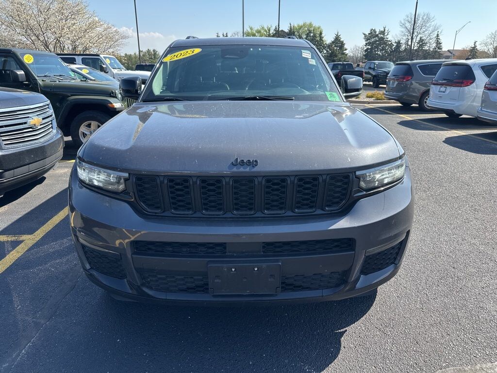 Recent Arrival! 2023 Jeep Grand Cherokee L Limited Baltic Gray Metallic Clearcoat 3.45 Rear Axle Ratio, 3rd row seats: split-bench, 4-Wheel Disc Brakes, 506 Watt Amplifier, 6 Speakers, 9 Amplified Speakers w/Subwoofer, ABS brakes, Active Noise Control System, Air Conditioning, Alloy wheels, AM/FM radio: SiriusXM with 360L, Anti-whiplash front head restraints, Audio memory, Auto High-beam Headlights, Automatic temperature control, Black Appearance Package, Brake assist, Bumpers: body-color, Capri Leatherette Seats, Compass, Delay-off headlights, Driver door bin, Driver vanity mirror, Dual front impact airbags, Dual front side impact airbags, Dual-Pane Panoramic Sunroof, Electronic Stability Control, Emergency communication system, Four wheel independent suspension, Front anti-roll bar, Front Bucket Seats, Front Center Armrest w/Storage, Front dual zone A/C, Front fog lights, Front License Plate Bracket, Front reading lights, Fully automatic headlights, Garage door transmitter, Gloss Black Exterior Accents, Heated door mirrors, Heated front seats, Heated rear seats, Heated steering wheel, Illuminated entry, Interior Rear Facing Camera, Knee airbag, Low tire pressure warning, Manual Fold Seatbacks, Memory seat, Molded In Color Black/Gloss Black Roof Rails, Navigation System, Normal Duty Suspension, Occupant sensing airbag, Outside temperature display, Overhead airbag, Overhead console, Panic alarm, ParkView Rear Back-Up Camera, Passenger door bin, Passenger vanity mirror, Power door mirrors, Power driver seat, Power Liftgate, Power passenger seat, Power steering, Power windows, Quick Order Package 23E, Radio data system, Radio: Uconnect 5 Nav w/10.1" Display, Rear air conditioning, Rear anti-roll bar, Rear reading lights, Rear window defroster, Rear window wiper, Reclining 3rd row seat, Remote keyless entry, Security system, Speed control, Speed-Sensitive Wipers, Split folding rear seat, Spoiler, Steering wheel mounted audio controls, Tachometer, Telescoping steering wheel, Tilt steering wheel, Traction control, Trip computer, Turn signal indicator mirrors, Variably intermittent wipers, Voltmeter, Wheels: 18" x 8.0" Fully Painted Aluminum, Wheels: 20" x 8.5" Gloss Black Painted Aluminum.
