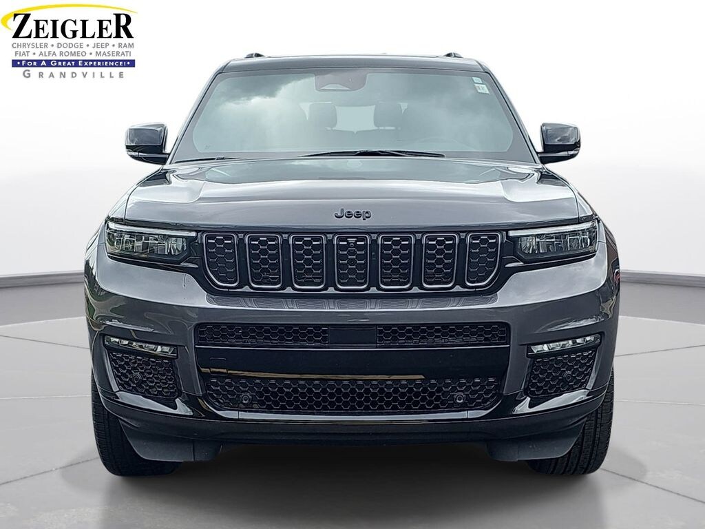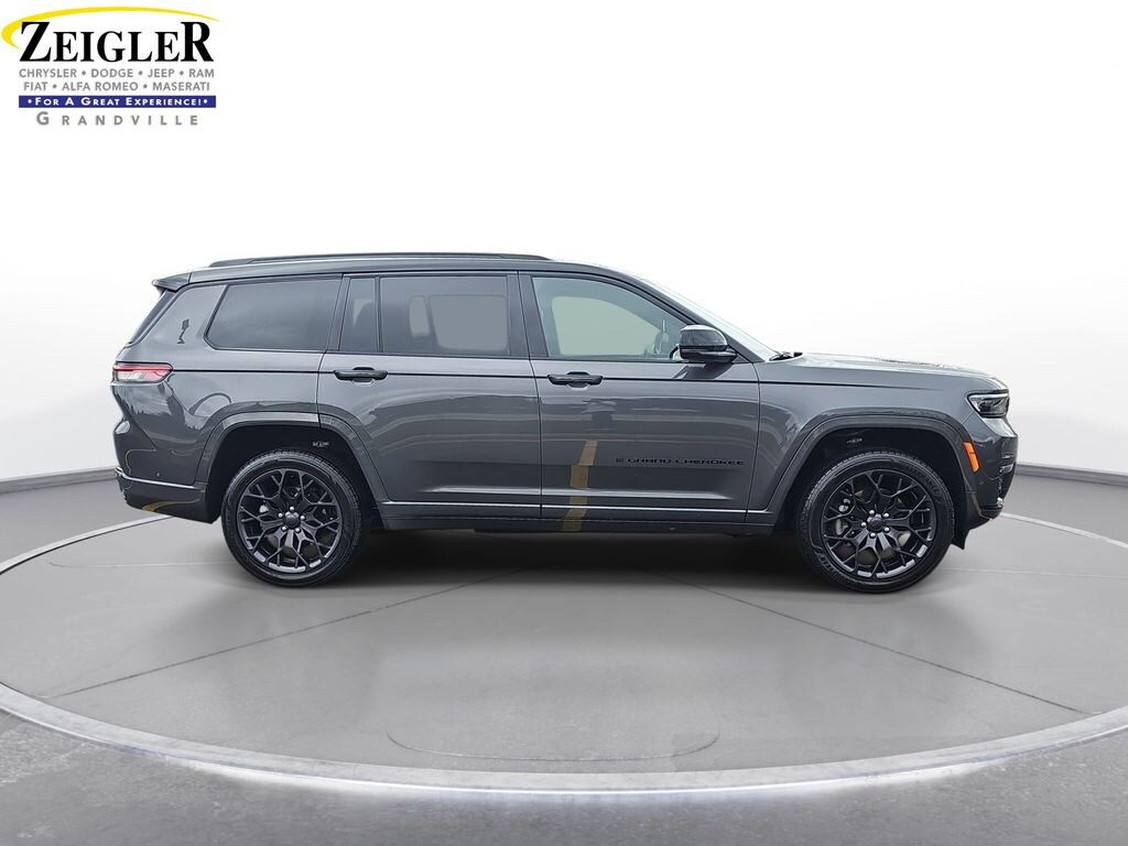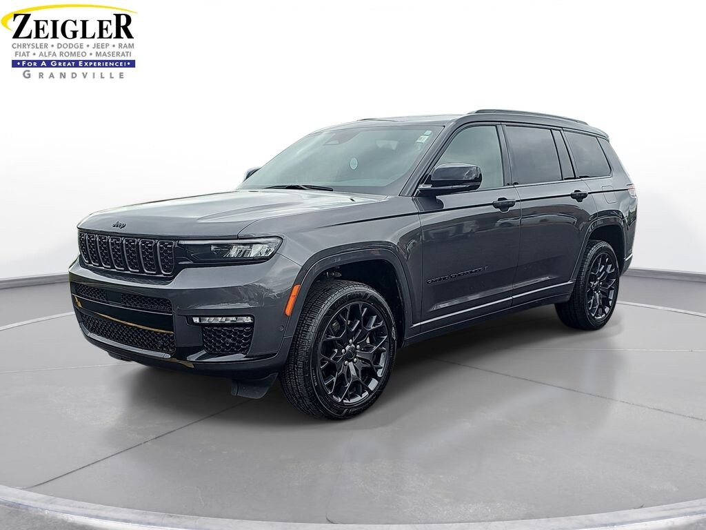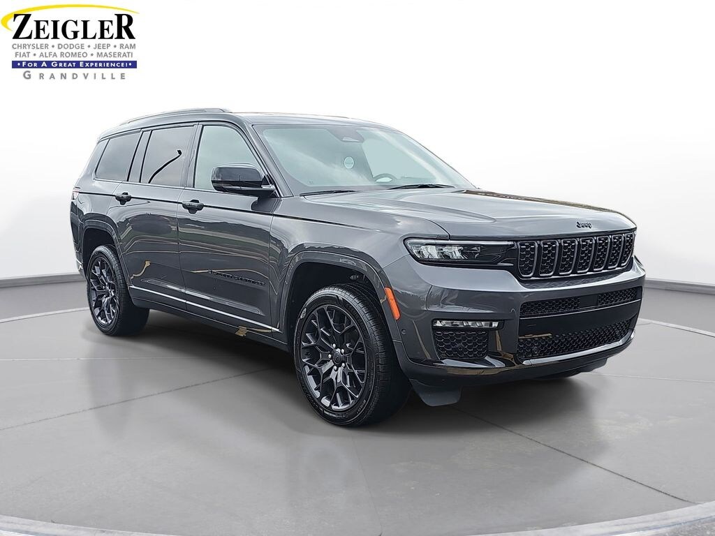 Certified. 2023 Jeep Grand Cherokee L Summit Baltic Gray Metallic Clearcoat 10 Speakers, 3.45 Rear Axle Ratio, 3rd row seats: split-bench, 4-Wheel Disc Brakes, ABS brakes, Active Noise Control System, Adaptive suspension, Air Conditioning, Alloy wheels, AM/FM radio: SiriusXM with 360L, Anti-whiplash front head restraints, Audio memory, Auto High-beam Headlights, Auto-dimming door mirrors, Auto-dimming Rear-View mirror, Auto-leveling suspension, Automatic temperature control, Brake assist, Bumpers: body-color, Compass, Delay-off headlights, Driver door bin, Driver vanity mirror, Dual front impact airbags, Dual front side impact airbags, Electronic Stability Control, Emergency communication system, Four wheel independent suspension, Front anti-roll bar, Front Bucket Seats, Front Center Armrest w/Storage, Front dual zone A/C, Front fog lights, Front reading lights, Fully automatic headlights, Garage door transmitter, Genuine wood dashboard insert, Genuine wood door panel insert, Gloss Black Exterior Accents, Gloss Black Roof Rails, Heated door mirrors, Heated front seats, Heated rear seats, Heated steering wheel, High Altitude Package, Illuminated entry, Knee airbag, Leather steering wheel, Low tire pressure warning, Memory seat, Nappa Leather Seats, Navigation System, Neutral Gray Exterior Accents, Normal Duty Suspension, Occupant sensing airbag, Outside temperature display, Overhead airbag, Overhead console, Painted Door Cladding, Panic alarm, Passenger door bin, Passenger vanity mirror, Power door mirrors, Power driver seat, Power Fold Seatbacks, Power Liftgate, Power moonroof, Power passenger seat, Power steering, Power windows, Quick Order Package 23S, Radio data system, Radio: Uconnect 5 Nav w/10.1" Display, Rain sensing wipers, Rear air conditioning, Rear anti-roll bar, Rear dual zone A/C, Rear reading lights, Rear seat center armrest, Rear window defroster, Rear window wiper, Reclining 3rd row seat, Remote keyless entry, Security system, Speed control, Speed-Sensitive Wipers, Split folding rear seat, Spoiler, Steering wheel memory, Steering wheel mounted audio controls, Tachometer, Telescoping steering wheel, Tilt steering wheel, Traction control, Trip computer, Turn signal indicator mirrors, Two Tone Paint Group, Variably intermittent wipers, Ventilated front seats, Voltmeter, Wheels: 20" x 8.5" Fully Painted Aluminum Silver, Wheels: 21" x 9" Black Painted Aluminum.