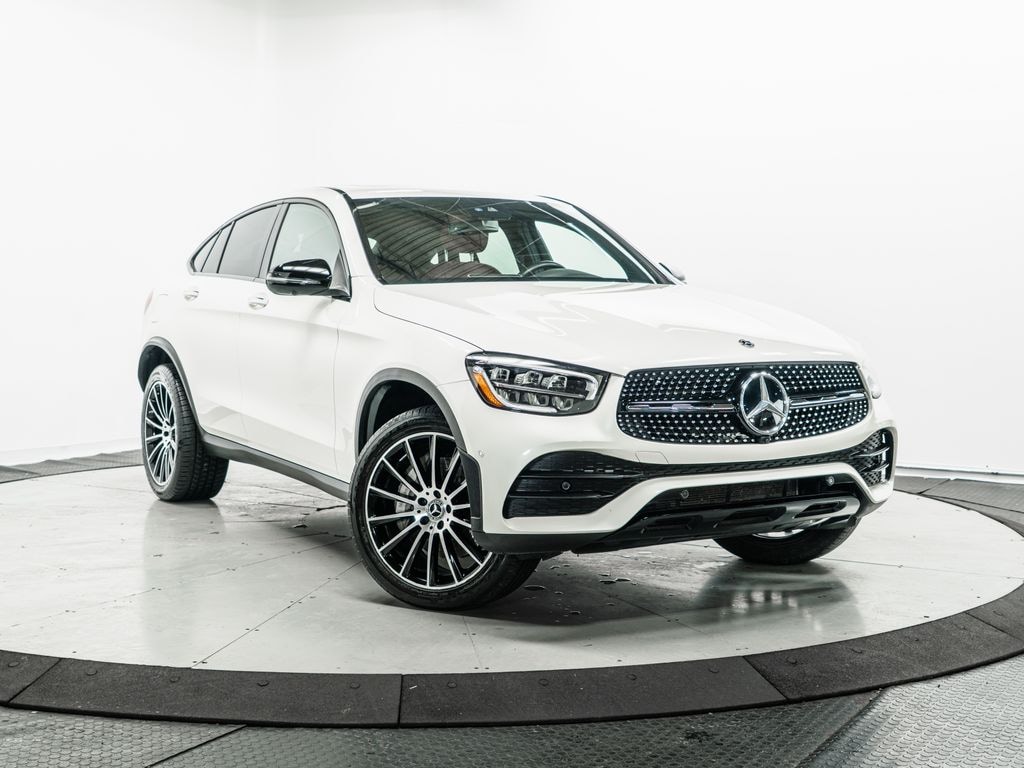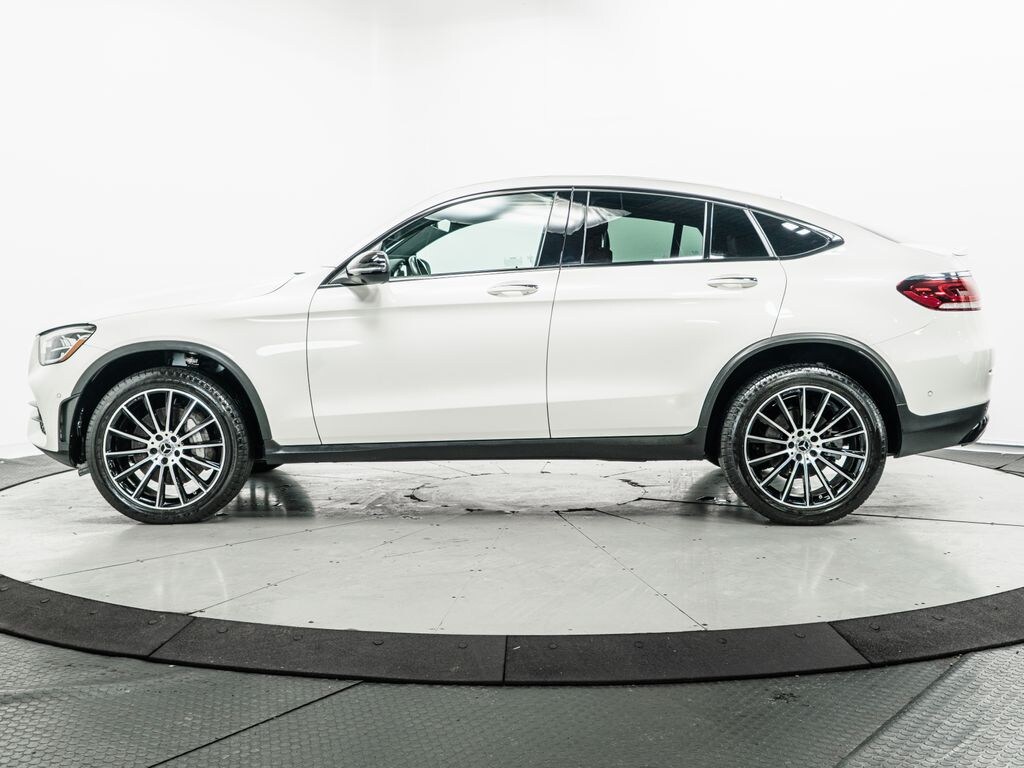 AMG® Line, AMG® Line Body Styling, AMG® Line Exterior, AMG® Line Floor Mats, AMG® Line Interior, Body Color Rear Spoiler, Heated Rear Seats, Heated Steering Wheel, High-Gloss Black Elements, Illuminated Star, Leather Upholstery, LED Logo Projectors, MB-Tex Dashboard w/Topstitching, Night Package, Perforated Brake Discs, Ventilated Front Seats, Wheel Locking Bolts, Wheels: 8.5J x 20" AMG® Multispoke w/Black Accents. 2022 Mercedes-Benz GLC 300 Coupe 4MATIC® 4MATIC® MANUFAKTUR Diamond White Metallic 4MATIC® 9-Speed Automatic I4