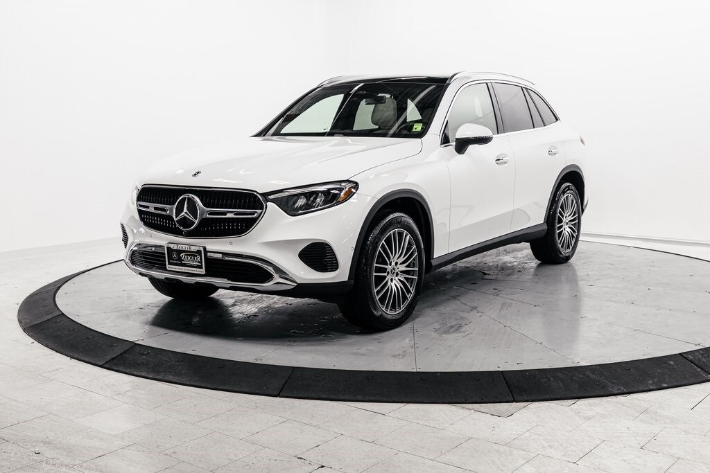 Polar White 2026 Mercedes-Benz GLC GLC 300 4MATIC® 4MATIC® 9-Speed Automatic I4 Side Mirror Logo Projector, Glossy Brown Ash Wood Trim, Multifunction Steering Wheel, Winter Package, All Season Tires, 19" Multi-Spoke Wheels, Heated Steering Wheel, Panorama Sunroof.