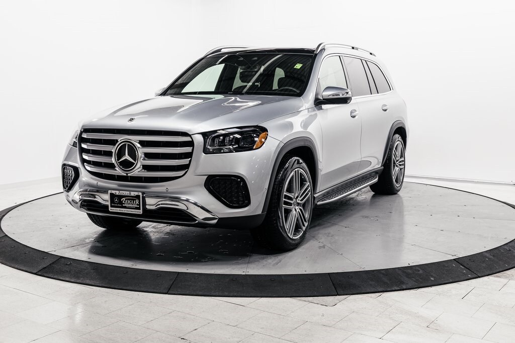 Silver 2026 Mercedes-Benz GLS GLS 450 4MATIC® 4MATIC® 9-Speed Automatic 3.0L I6 2nd Row Bench Seating, All Season Tires, 12.3" Center Display, HANDS FREE ACCESS, ABS brakes, Active Cruise Control, Compass, Electronic Stability Control, Front Bucket Seats, Front dual zone A/C, Heated door mirrors, Heated Rear Seats, Illuminated entry, Low tire pressure warning, Navigation System, Power Liftgate, Power passenger seat, Rear dual zone A/C, Remote keyless entry, Split folding rear seat, Traction control, Ventilated front seats, Wheels: 21" Triple 5-Spoke.