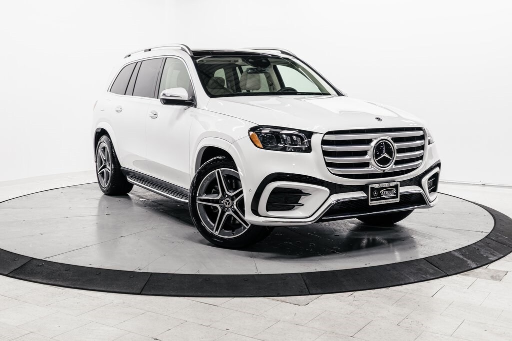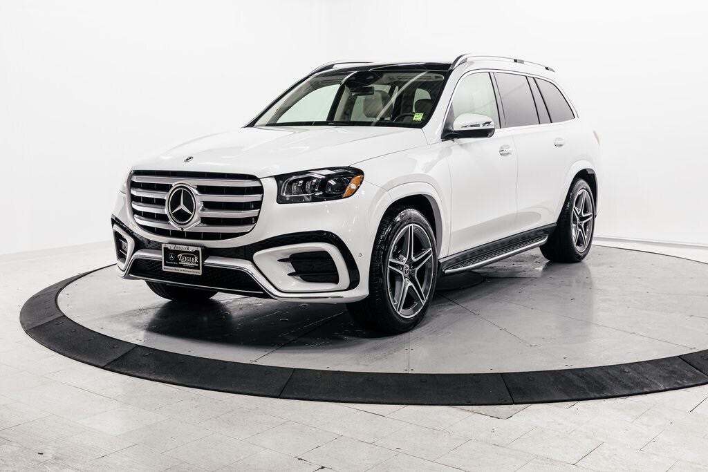 White Metallic 2026 Mercedes-Benz GLS GLS 450 4MATIC® 4MATIC® 9-Speed Automatic 3.0L I6 2nd Row Captain Seats, Power Rear-Side Window Sunshades, All Season Tires, 21" AMG Twin 5-Spoke Wheels, All-Season Front/Rear Floormats, Black Rubber, ABS brakes, Active Cruise Control, AMG® Bodystyling, AMG® Brushed Stainless Steel Sports Pedals, AMG® Floor Mats, AMG® Line Exterior, AMG® Rear Apron, AMG® Side Skirts in Body Color, AMG® Sport 3-Twin-Spoke Steering Wheel, Apple CarPlay®/Android Auto®, Compass, Dashcam, Electronic Stability Control, Front and Rear Flared Wheel Arches in Body Color, Front Bucket Seats, Front dual zone A/C, Head-Up Display, Heated door mirrors, Heated Rear Seats, Heated Rear Seats, Heated Steering Wheel, Illuminated entry, Large Front Brake System, Low tire pressure warning, Navigation System, Power Liftgate, Power passenger seat, Rear dual zone A/C, Remote keyless entry, Soft-Close Doors, Split folding rear seat, Traction control, Ventilated front seats.