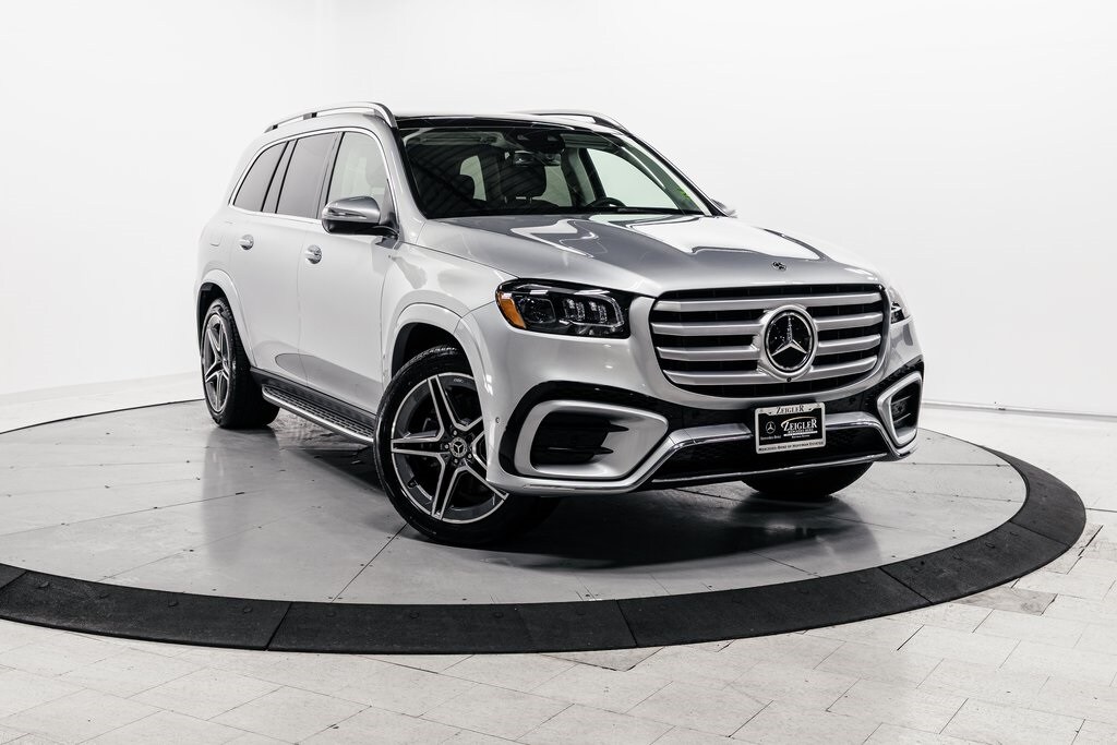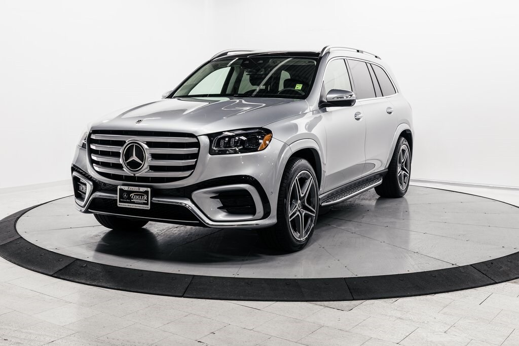Silver 2026 Mercedes-Benz GLS GLS 450 4MATIC® 4MATIC® 9-Speed Automatic 3.0L I6 2nd Row Captain Seats, All-Season Front/Rear Floormats, Black Rubber, ABS brakes, Active Cruise Control, AMG® Bodystyling, AMG® Brushed Stainless Steel Sports Pedals, AMG® Floor Mats, AMG® Line Exterior, AMG® Rear Apron, AMG® Side Skirts in Body Color, AMG® Sport 3-Twin-Spoke Steering Wheel, Apple CarPlay®/Android Auto®, Brake assist, Compass, Electronic Stability Control, Front and Rear Flared Wheel Arches in Body Color, Front Bucket Seats, Front dual zone A/C, Heated door mirrors, Heated Rear Seats, Illuminated entry, Large Front Brake System, Low tire pressure warning, Navigation System, Power Liftgate, Power passenger seat, Rain sensing wipers, Rear dual zone A/C, Remote keyless entry, Split folding rear seat, Traction control, Ventilated front seats.
