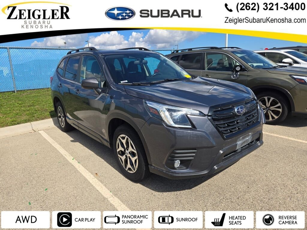 2022 Subaru Forester Premium Subaru Certified, AWD, Bluetooth, Backup Camera, Eye Sight Pre-Collision System, Subaru STARLINK, Lane Departure Warning System, Blind Spot Monitor, Android Auto, Apple Carplay, Panoramic Roof, Heated Seats, Power Windows & Locks, Touch Screen Radio, MP3 Player, Satellite Radio, Push Button Start, Local Trade, Well Maintained w/Detailed Service Records, Inspected By Subaru Certified Technicians, Automatic, Alloy Wheels, Traction Control, Tinted Glass, Remote Keyless Entry, Cruise Control, & More!.