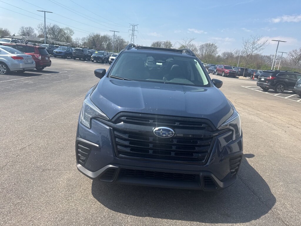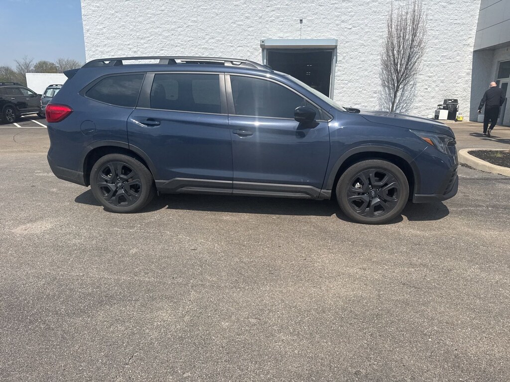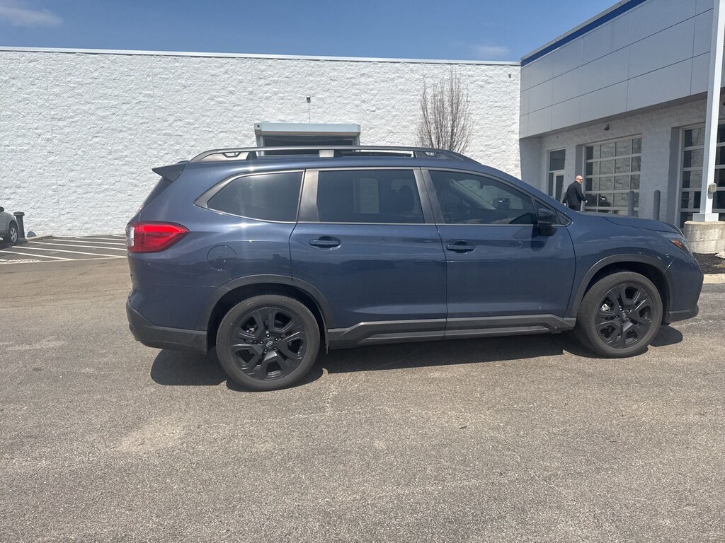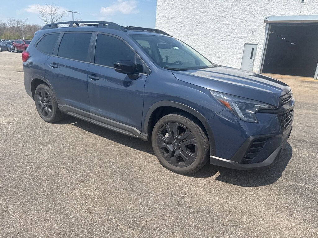 Recent Arrival! 2024 Subaru Cosmic Blue Pearl AWD Ascent Onyx Edition Lineartronic CVT Odometer is 1275 miles below market average! 3rd row seats: bench, 4-Wheel Disc Brakes, 6 Speakers, ABS brakes, Air Conditioning, Alloy wheels, AM/FM radio: SiriusXM, Auto High-beam Headlights, Auto-dimming Rear-View mirror, Automatic temperature control, Axle Ratio: 4.44, Brake assist, Bumpers: body-color, Compass, Delay-off headlights, Driver door bin, Driver vanity mirror, Dual front impact airbags, Dual front side impact airbags, Electronic Stability Control, Emergency communication system: STARLINK Safety and Security (Subscription Required), Exterior Parking Camera Rear, Four wheel independent suspension, Front anti-roll bar, Front Bucket Seats, Front Center Armrest, Front dual zone A/C, Front fog lights, Front reading lights, Fully automatic headlights, Garage door transmitter: HomeLink, Heated door mirrors, Heated Front Bucket Seats, Heated front seats, Heated steering wheel, Illuminated entry, Knee airbag, Leather Shift Knob, Leather steering wheel, Low tire pressure warning, Occupant sensing airbag, Outside temperature display, Overhead airbag, Overhead console, Panic alarm, Passenger door bin, Passenger vanity mirror, Power door mirrors, Power driver seat, Power Liftgate, Power moonroof, Power steering, Power windows, Radio data system, Radio: Subaru STARLINK 11.6" Multimedia Plus System, Rear air conditioning, Rear anti-roll bar, Rear reading lights, Rear window defroster, Rear window wiper, Reclining 3rd row seat, Remote keyless entry, Security system, Speed control, Speed-sensing steering, Split folding rear seat, Spoiler, STARLINK/Apple CarPlay/Android Auto, StarTex Upholstery, Steering wheel mounted audio controls, Tachometer, Telescoping steering wheel, Tilt steering wheel, Traction control, Trip computer, Turn signal indicator mirrors, Variably intermittent wipers, and Wheels: 20" x 7.5 J Aluminum Alloy w/Black Finish.