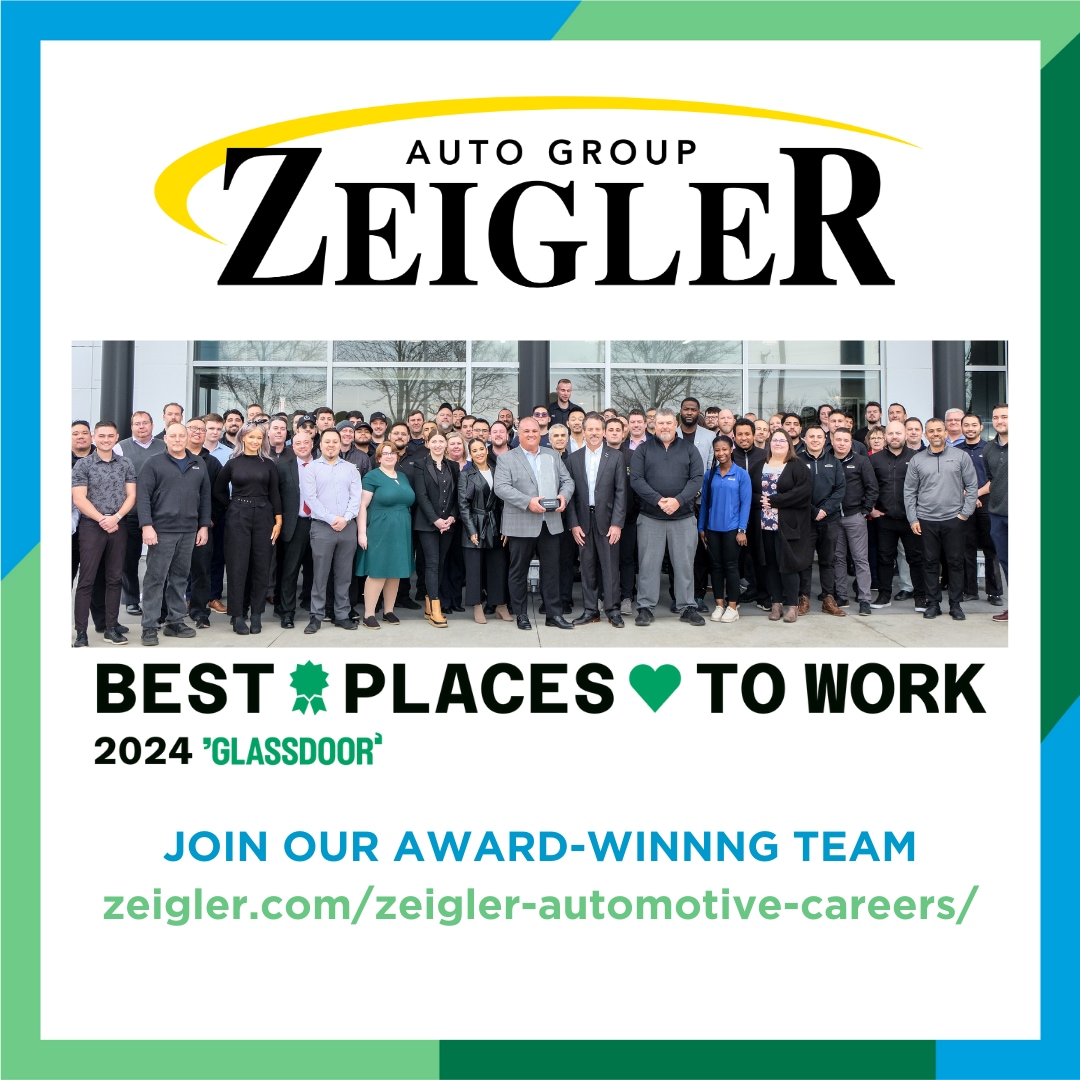 Zeigler Auto Group is always looking for top talent at all 41 of their locations across the Midwest including Wisconsin, Illinois, Indiana, and Michigan. To join our award-winning work-life balance team, please visit zeigler.com/zeigler-automotive-careers.htm.