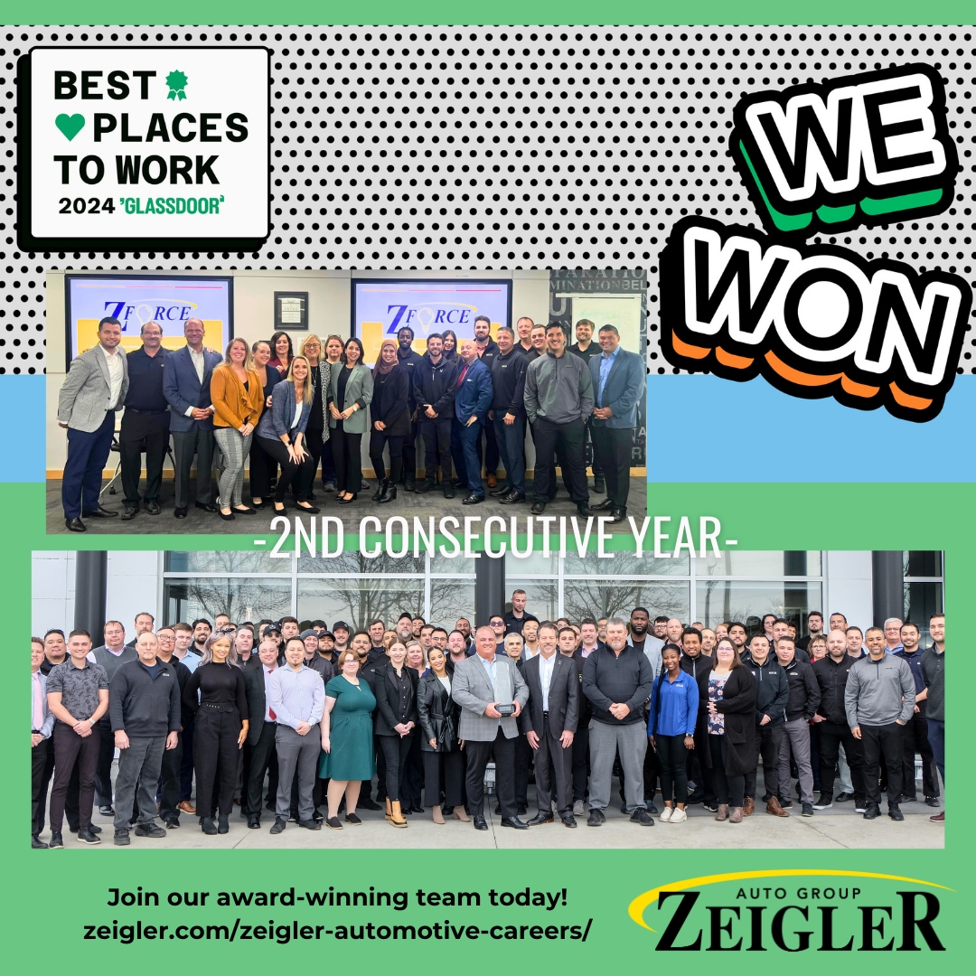 Glassdoor Honors Zeigler Auto Group for a Second Consecutive Year with its 2024 Best Places to Work Award