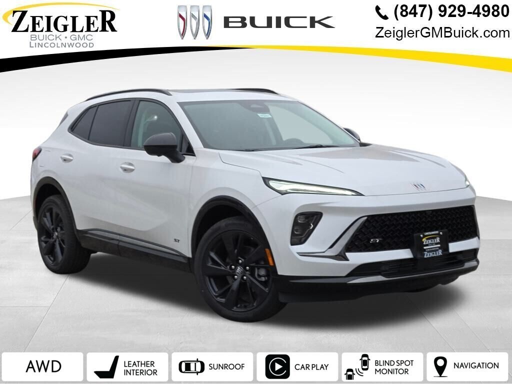 2025 BUICK ENVISION SPORT TOURING AWD, 2.0L Turbo engine, 9 speed automatic transmission, White Frost Tricoat exterior, Garnet Seats with Ebony interior, Panoramic Moonroof, Comfort and Convenience Package, dual zone auto climate control, automatic air recirculation, heated driver and front passenger seats, air quality indicator, hands free power liftgate, heated steering wheel, universal home remote, 20" aluminum wheels with carbon flash metallic finish, 17" spare wheel and tire, engine stop start, 8 years ONSTAR basics, SIRIUSXM audio with trial subscription, wireless charging, ultra wide 30" display screen with bluetooth audio, wireless Apple carplay and wireless android auto, navigation, remote vehicle starter system, BUICK quiettuning with active noise cancellation, BOSE 9 speaker premium audio, perforated leather appointed seats, 8 way power driver seat with 4 way power lumbar, memory setting driver seat, leather wrapped flat bottom steering wheel, rear cargo cover, sport alloy pedals, outside power and heated rearview mirrors with memory settings, enhanced LED headlamps, adaptive cruise control, safety alert seat, head up display, forward collision alert, following distance indicator, lane keep assist with lane departure warning, rear park assist, rear cross traffic braking, front pedestrian and bicyclist braking, blind zone steering assist, enhanced automatic emergency braking, intersection automatic emergency braking side bicyclist alert, reverse automatic braking active safety package 2, HD surround vision, rear pedestrian alert, traffic sign recognition, intellibeam, 22/28 city/highway MPG.