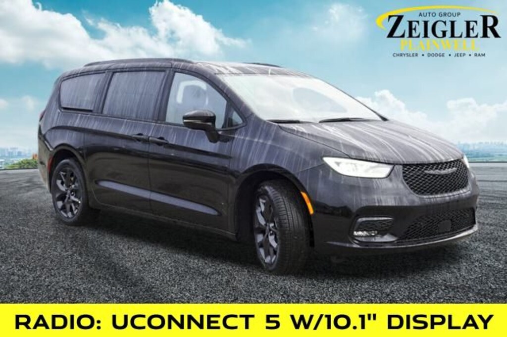Recent Arrival! Diamond Black Crystal Pearlcoat 2026 Chrysler Pacifica Select AWD 9-Speed 948TE Automatic 3.6L V6 24V VVT 10.1" Touchscreen Display, 360 Surround View Camera System, 4G LTE Wi-Fi Hot Spot, Anodized Ink Badging, Apple CarPlay/Android Auto, AWD Suspension, Black Day Light Opening Moldings, Black Stow 'N Place Roof Rack, Brake assist, Caprice Leatherette w/S Logo, Electronic Stability Control, Emergency communication system: Chrysler Connect, Heated front seats, ParkSense Front/Rear Park Assist w/Stop, ParkView Rear Back-Up Camera, Piano Black Interior Accents, Power Liftgate, Premium Fascia Upper/Lower Grille w/Black Surround, Premium Rear Fascia Black, Quick Order Package 27L, Radio: Uconnect 5 w/10.1" Display, Remote keyless entry, S Appearance Package, S Badge, Safety Sphere, Security system, Steering wheel mounted audio controls, Wheels: 20" x 7.5" S-Model Aluminum Design 1.