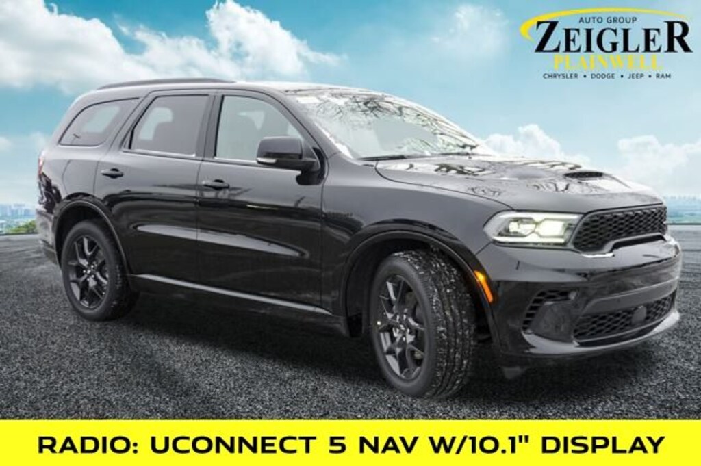 Recent Arrival! DB Black Crystal Clearcoat 2026 Dodge Durango GT Plus HEMI V8 AWD 8-Speed Automatic HEMI 5.7L V8 Multi Displacement VVT AWD, 115V Auxiliary Power Outlet, 7 & 4 Pin Wiring Harness, Adaptive Cruise Control w/Stop, AM/FM radio: SiriusXM w/360L, Apple CarPlay/Android Auto, Auto High Beam Headlamp Control, Auto-Dimming Exterior Driver Mirror, Black Roof Rails, Blacktop Package, Blind Spot w/Trailer Detection, Brake assist, Class IV Receiver Hitch, Dual Remote USB Port - Charge Only, Electronic Stability Control, Emergency communication system: Dodge Connect, Exterior Mirrors w/Heating Element, Exterior Mirrors w/Memory, Exterior Mirrors w/Supplemental Signals, Floor Console w/Leather Armrest, Full Speed Forward Collision Warning Plus, Gloss Black Badges, Gloss Black Exterior Mirrors, Heated Second Row Seats, Integrated Roof Rail Crossbars, Leather Trimmed Bucket Seats, Leather Wrapped Door Panels, LED Auxiliary Low Beam & Turn Signal, Navigation System, ParkView Rear Back-Up Camera, Power 6x9 Multi-Function Foldaway Mirrors, Power 8-Way Driver Memory 8-Way Passenger Seats, Power Driver/Passenger 4-Way Lumbar Adjust, Power Liftgate, Power Sunroof, Power Tilt & Telescopic Steering Column, Quick Order Package 22T GT Plus, Radio: Uconnect 5 Nav w/10.1" Display, Radio/Driver Seat/Mirrors Memory, Red Accent Stitching, Satin Black Dodge Tail Lamp Badge, Trailer Brake Control, Ventilated Front Seats.
