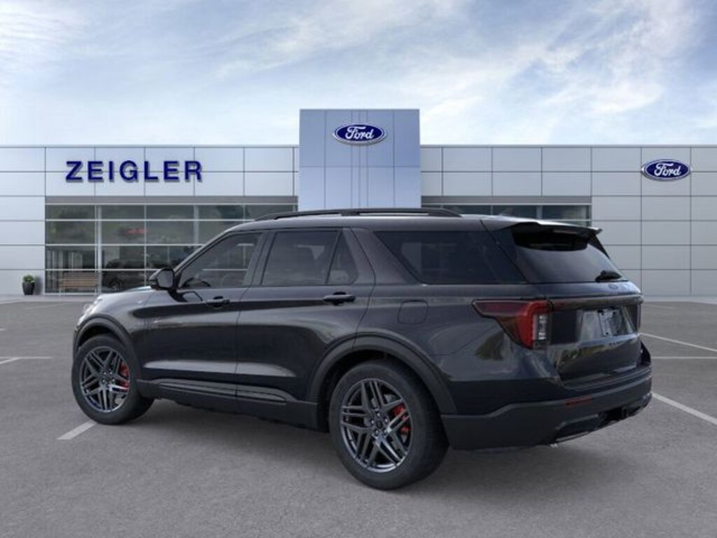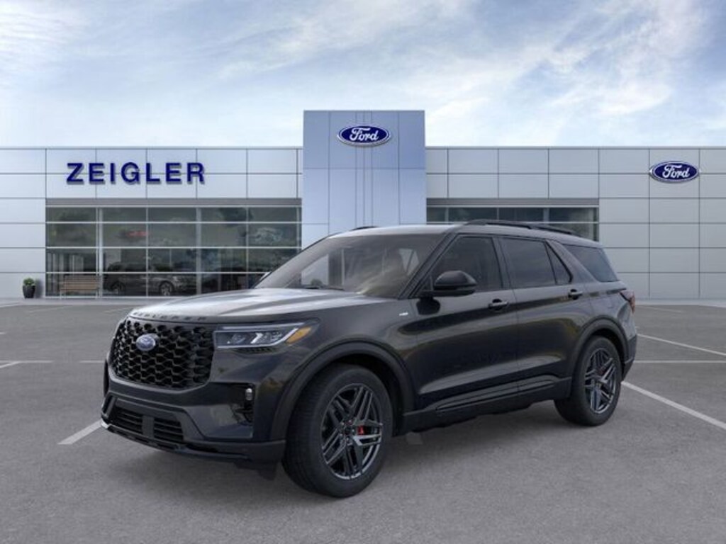 Black 2025 Ford Explorer ST-Line 110V/150W AC Power Outlet, 2nd Row Heated Seats, Ambient Lighting, Auto-Dimming Interior Rear-View Mirror, Equipment Group 300A Standard Package, Memory Driver's Seat, Navigation System, Performance Brakes, Power-Folding Sideview Mirrors w/Autofold, Premium Package, Rain-Sensing Wipers (Front Only), Red Painted Perf Front & Rear Brake Calipers, ST-Line Street Pack, Wheels: 21" Magnetite-Painted Aluminum, Wireless Charging Pad.
