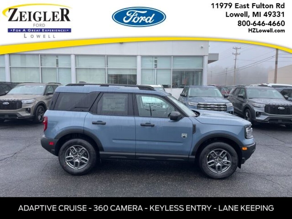 **HEATED SEATS**REAR VIEW CAMERA**POWER DRIVER SEAT**13.2" TOUCHSCREEN**APPLE CARPLAY AND ANDROID AUTO**REMOTE KEYLESS ENTRY**TUNED SUSPENSION**HOSS 1.0 OFF ROAD**Azure Gray Metallic Tri-Coat 2026 Ford Bronco Sport Big Bend HEATED SEATS 4WD 8-Speed Automatic 1.5L EcoBoost *REMOTE START, *REARVIEW CAMERA, *HEATED SEATS, AM/FM Stereo, Cloth with Easy-to-Clean Front Bucket Seats, Equipment Group 200A Standard Package, Ford Connectivity Package (1-Year Included), SiriusXM with 360L, SYNC 4 with Enhanced Voice Recognition, Wheels: 17" Carbonized Gray Painted Aluminum.