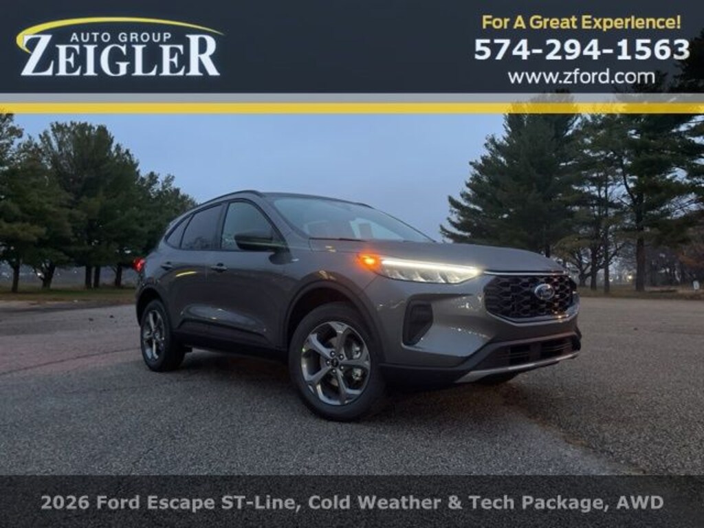 Gray Metallic 2026 Ford Escape ST-Line PUSH BUTTON START, REAR VIEW CAMERA, REMOTE START, SYNC, HEATED SEATS, BLUETOOTH, AWD, Escape ST-Line, 4D Sport Utility, 8-Speed Automatic, Cold Weather Package, Equipment Group 300A, Ford Co-Pilot360 Assist+, Heated Front Row Seats, Heated Sideview Mirrors, Heated Steering Wheel, Intersection Assist, Predictive Speed Assist, Rear Parking Sensor, Tech Pack #1.