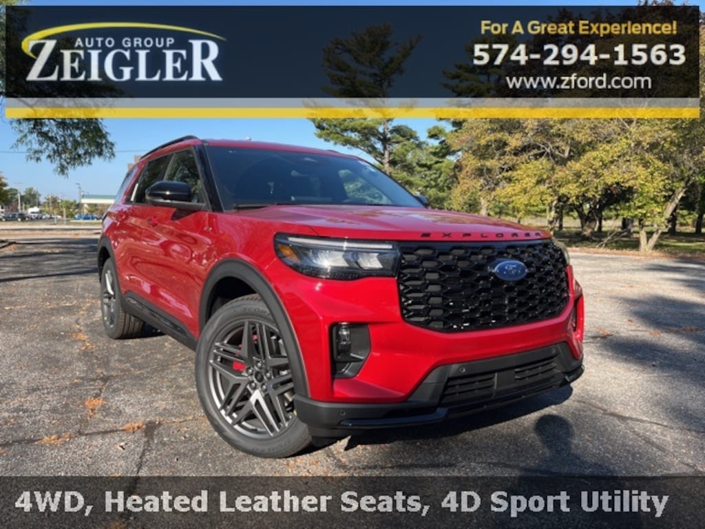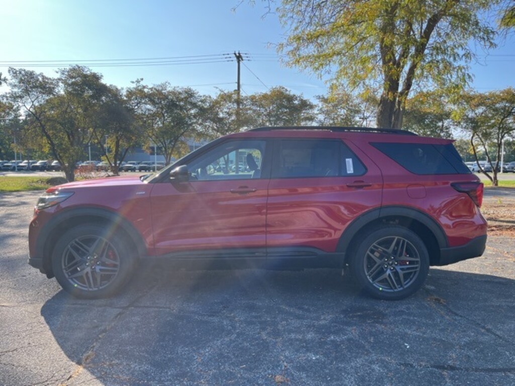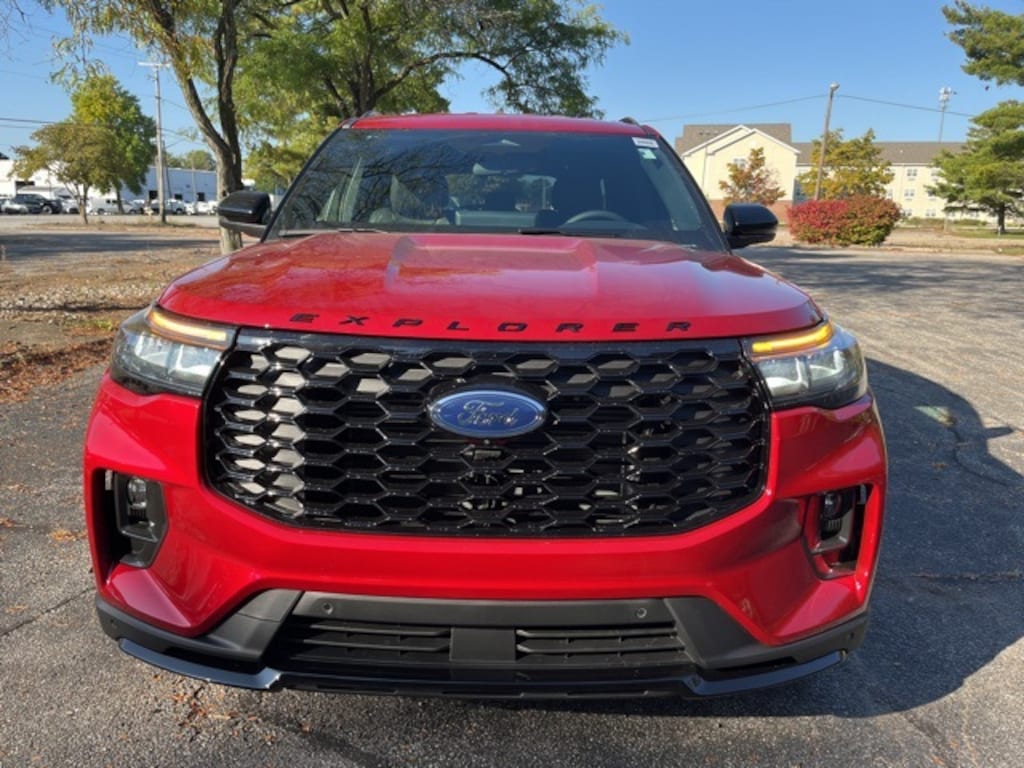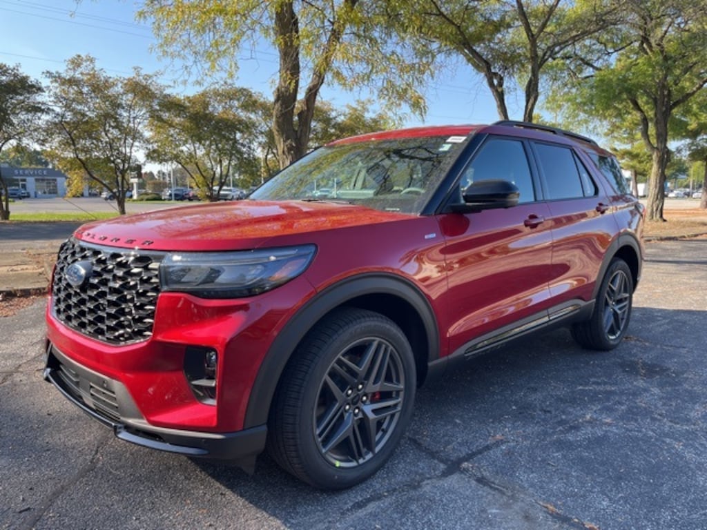 Rapid Red Metallic Tinted Clearcoat 2026 Ford Explorer ST-Line LEATHER, NAVIGATION, PUSH BUTTON START, REAR VIEW CAMERA, REVERSE SENSING SYSTEM, SYNC, HEATED SEATS, BLUETOOTH, 4X4, 4WD, Equipment Group 300A Standard Package, Navigation System, Performance Brakes, ST-Line Street Pack, Wheels: 21" Magnetite-Painted Aluminum.