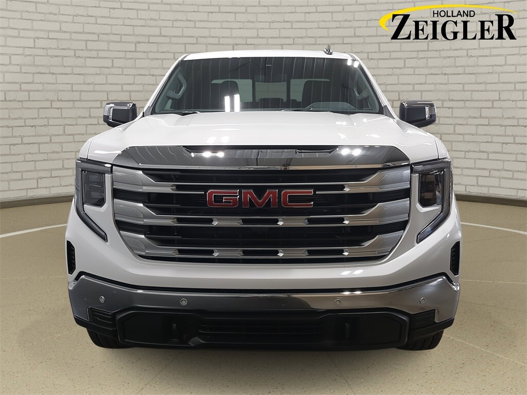 Navigation, Bluetooth, Sunroof, Heated seats, Apple carplay, Android auto, Back-up camera, Tow package, 4X4, Keyless entry, Remote start, Power seat, Sierra 1500 SLE, 4D Crew Cab, EcoTec3 5.3L V8, 10-Speed Automatic, 4WD, Summit White, Black Cloth, 120-Volt Bed Mounted Power Outlet, 120-Volt Interior Power Outlet, 2 Charge/Data USB Ports, 2 Type-C Charge-Only Rear USB Ports, Adaptive Cruise Control, Auto-Locking Rear Differential, Chrome Header w/Medium Silver Grille Insert Bars, Color-Keyed Carpeting Floor Covering, Deep-Tinted Glass, Dual-Zone Automatic Climate Control, Electric Rear-Window Defogger, Enhanced Cooling Radiator, Front Frame-Mounted Black Recovery Hooks, Front Rubberized-Vinyl Floor Mats, HD Rear Vision Camera, HD Surround Vision, Heavier Duty Rear Springs, High Capacity Suspension Package, Hitch Guidance, Hitch View, In-Vehicle Trailering System App, Increased RGAWR, Integrated Trailer Brake Controller, Keyless Open & Start, LED Cargo Area Lighting, Manual Tilt-Wheel & Telescoping Steering Column, Max Trailering Package, Navigation System, OnStar Services Capable, Perimeter Lighting, Power Door Locks, Power Front Windows w/Driver Express Up/Down, Power Front Windows w/Passenger Express Down, Power Rear Windows w/Express Down, Power Sliding Rear Window w/Rear Defogger, Preferred Equipment Group 3SA, Preferred Package, Push Button Start, Rear Cross Traffic Braking, Rear Pedestrian Detection, Rear Rubberized-Vinyl Floor Mats, Rear Wheelhouse Liners, Remote Start Package, Remote Vehicle Starter System, Sierra Safety Plus Package, SiriusXM w/360L Trial Subscription, SLE Convenience Package, SLE Value Package, Standard Suspension Package, Steering Wheel Audio Controls, Theft Deterrent System (Unauthorized Entry), Trailer Camera Provisions, Trailer Side Blind Zone Alert, Trailering Package, Ultrasonic Front & Rear Park Assist, Universal Home Remote, Wi-Fi Hotspot Capable. Price includes: $1500 - GM Bonus Cash. Exp. 11/03/2025 $1750 - Buick & GMC Consumer Cash Program. Exp. 11/03/2025