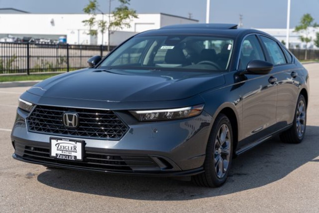 51/44 City/Highway MPG Meteorite Gray Metallic APPLE CARPLAY, ANDROID AUTO, BLIND SPOT MONITOR, REMOTE START, WIRELESS PHONE CHARGER, ADAPTIVE CRUISE CONTROL, LANE DEPARTURE WARNING, SUNROOF, PARKING SENSORS, LEATHER INTERIOR, HEATED SEATS, MEMORY SEATS, BACKUP CAMERA, KEYLESS ENTRY, BLUETOOTH. 2025 Honda Accord Hybrid EX-L FWD eCVT At Zeigler Honda of Racine, we take pride in treating our customers like family, ensuring that your experience is one that you will never forget.Take advantage of our VIP test drive and experience by calling us at (262) 822-3231. We are proud to service customers in Racine, Mt. Pleasant, Milwaukee, Kenosha, and surrounding areas! See dealer for complete details, price may exclude certification, added accessories and/or packages, certain taxes, $399 doc fee, charges and/or fees. Dealer is not responsible for pricing errors. Book values should be considered estimates only. Some of our used vehicles may be subject to unrepaired safety recalls.