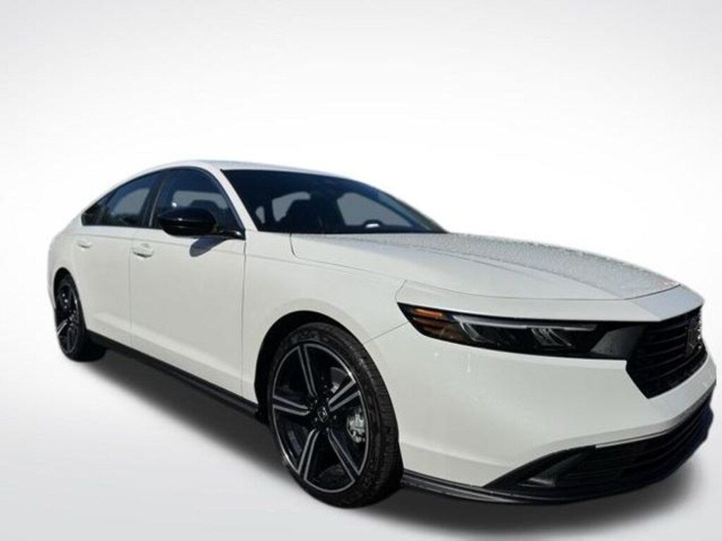Recent Arrival! 2025 Accord Hybrid Honda Sport Platinum White Pearl 2.0L I4 DOHC 16V, Adaptive Cruise Control: Adaptive Cruise Control (ACC) with Low-Speed Follow, Apple CarPlay/Android Auto, Blind Spot Information (BSI) System warning, Emergency communication system: HondaLink, Front dual zone A/C, Heated Front Bucket Seats, Illuminated entry, Lane departure: Lane Keeping Assist System (LKAS) active, Power driver seat, Power moonroof, Remote keyless entry, Steering wheel mounted audio controls, Traction control.