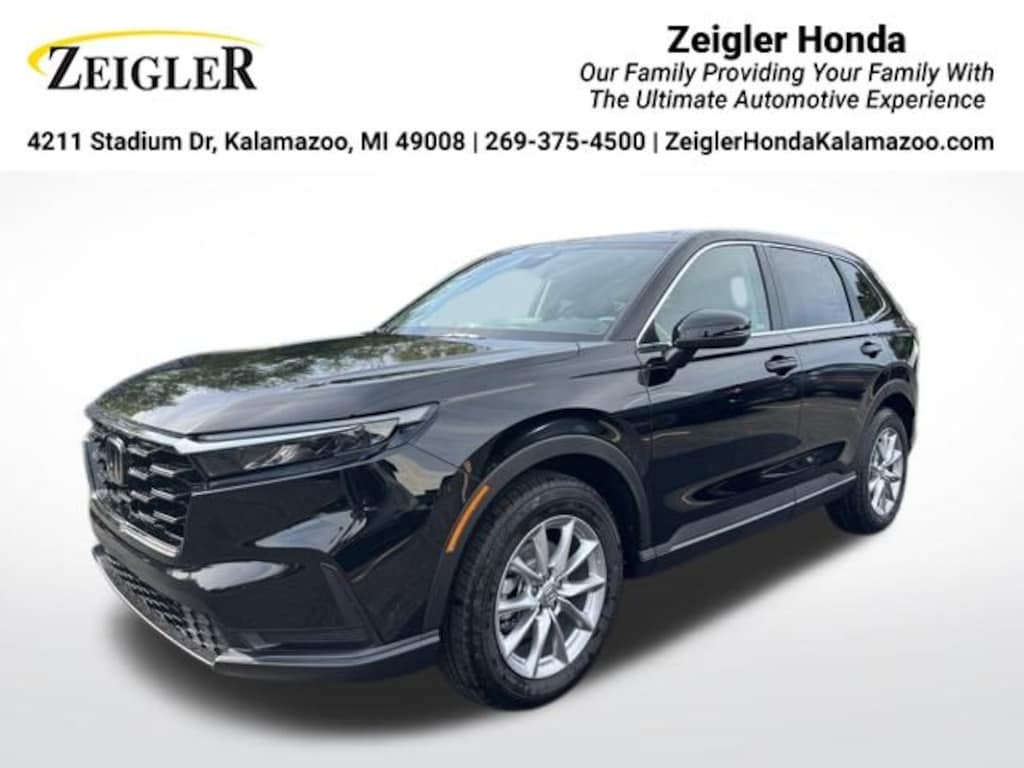 Recent Arrival! 2026 CR-V Honda EX Crystal Black Pearl AWD, Adaptive Cruise Control: Adaptive Cruise Control (ACC) with Low-Speed Follow, Apple CarPlay/Android Auto, Blind Spot Information (BSI) System warning, Front dual zone A/C, Heated door mirrors, Heated Front Bucket Seats, Illuminated entry, Power door mirrors, Power driver seat, Power moonroof, Remote keyless entry, Steering wheel mounted audio controls, Traction control.