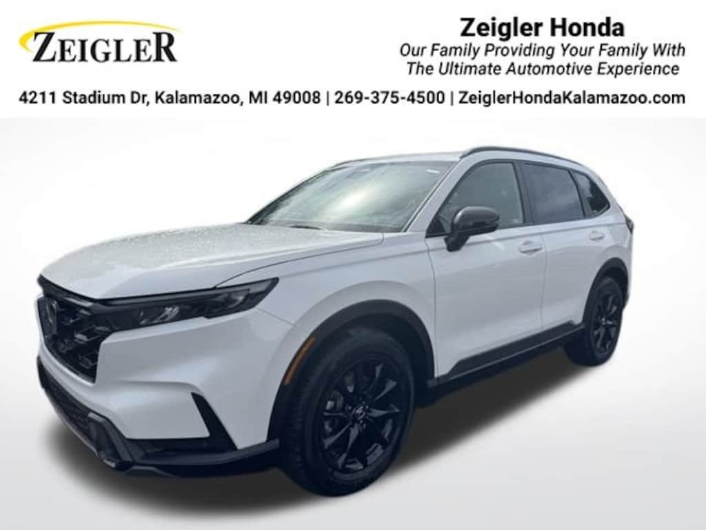 Recent Arrival! 2026 CR-V Hybrid Honda Sport-L Platinum White Pearl 2.0L I4 DOHC 16V, Adaptive Cruise Control: Adaptive Cruise Control (ACC) with Low-Speed Follow, Apple CarPlay/Android Auto, Blind Spot Information (BSI) System warning, Front dual zone A/C, Heated door mirrors, Heated Front Bucket Seats, Illuminated entry, Memory seat, Power door mirrors, Power driver seat, Power Liftgate, Power moonroof, Remote keyless entry, Steering wheel mounted audio controls, Traction control.