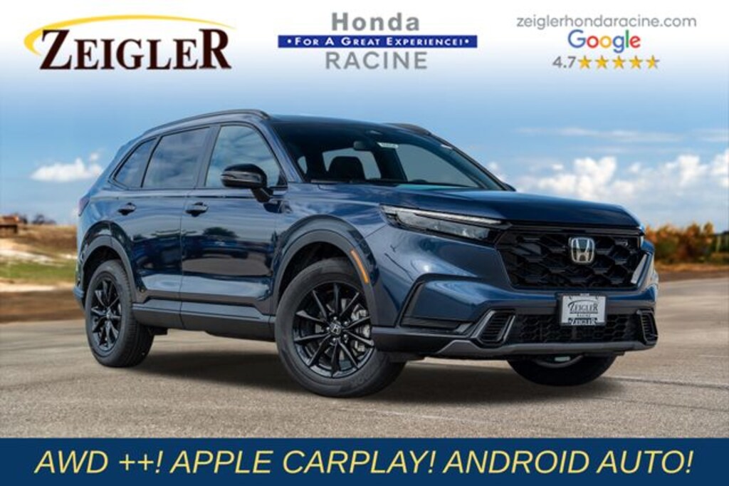 40/34 City/Highway MPG Canyon River Blue Metallic AWD ++, APPLE CARPLAY, ANDROID AUTO, BLIND SPOT MONITOR, REMOTE START, WIRELESS PHONE CHARGER, ADAPTIVE CRUISE CONTROL, LANE DEPARTURE WARNING, SUNROOF, HEATED SEATS, BACKUP CAMERA, KEYLESS ENTRY, BLUETOOTH. 2026 Honda CR-V Hybrid Sport AWD eCVT At Zeigler Honda of Racine, we take pride in treating our customers like family, ensuring that your experience is one that you will never forget.Take advantage of our VIP test drive and experience by calling us at (262) 822-3231. We are proud to service customers in Racine, Mt. Pleasant, Milwaukee, Kenosha, and surrounding areas! See dealer for complete details, price may exclude certification, added accessories and/or packages, certain taxes, $399 doc fee, charges and/or fees. Dealer is not responsible for pricing errors. Book values should be considered estimates only. Some of our used vehicles may be subject to unrepaired safety recalls.