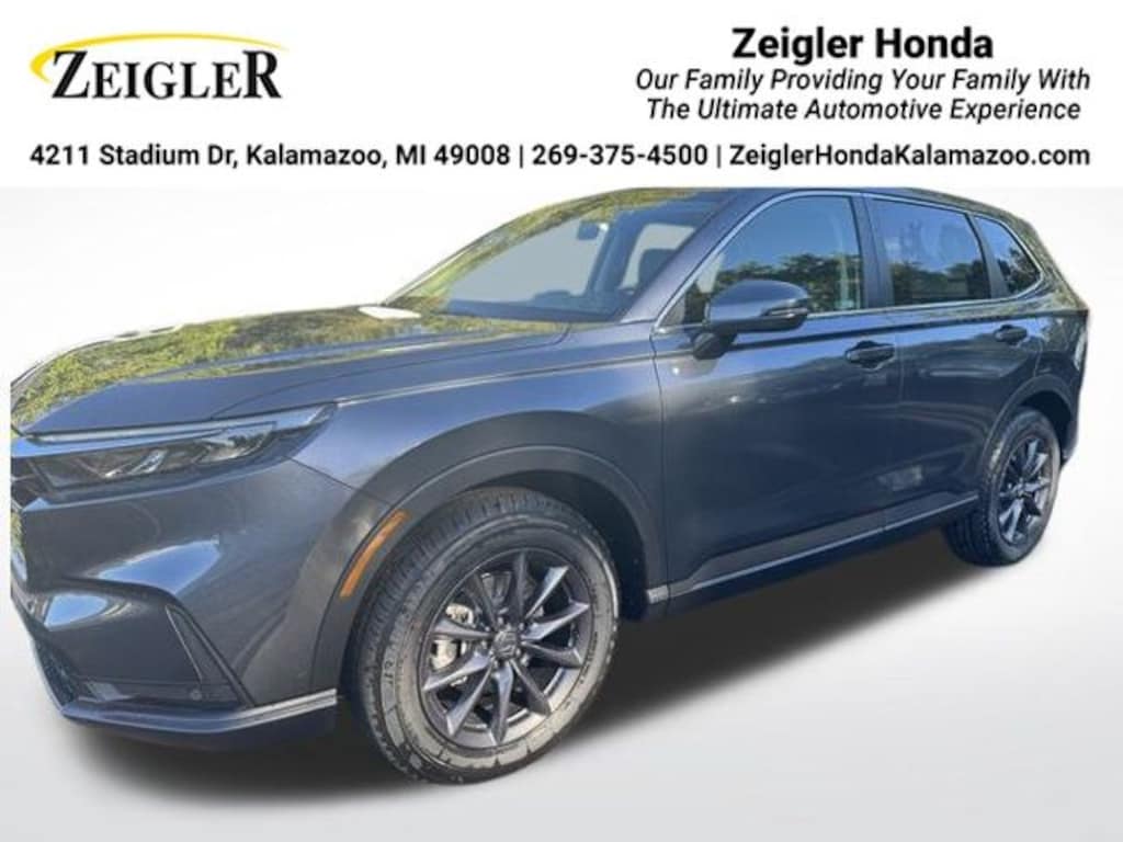 Recent Arrival! 2026 CR-V Honda EX-L Meteorite Gray Metallic AWD, Adaptive Cruise Control: Adaptive Cruise Control (ACC) with Low-Speed Follow, Apple CarPlay/Android Auto, Auto-dimming Rear-View mirror, Blind Spot Information (BSI) System warning, Front dual zone A/C, Heated door mirrors, Heated Front Bucket Seats, Illuminated entry, Memory seat, Power door mirrors, Power driver seat, Power Liftgate, Power moonroof, Power passenger seat, Remote keyless entry, Steering wheel mounted audio controls, Traction control.
