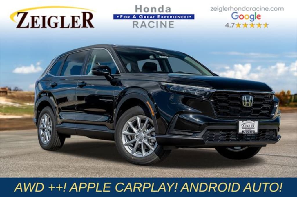 27/31 City/Highway MPG Crystal Black AWD ++, APPLE CARPLAY, ANDROID AUTO, BLIND SPOT MONITOR, REMOTE START, WIRELESS PHONE CHARGER, ADAPTIVE CRUISE CONTROL, LANE DEPARTURE WARNING, SUNROOF, HEATED SEATS, BACKUP CAMERA, KEYLESS ENTRY, BLUETOOTH. 2026 Honda CR-V EX AWD CVT At Zeigler Honda of Racine, we take pride in treating our customers like family, ensuring that your experience is one that you will never forget.Take advantage of our VIP test drive and experience by calling us at (262) 822-3231. We are proud to service customers in Racine, Mt. Pleasant, Milwaukee, Kenosha, and surrounding areas! See dealer for complete details, price may exclude certification, added accessories and/or packages, certain taxes, $399 doc fee, charges and/or fees. Dealer is not responsible for pricing errors. Book values should be considered estimates only. Some of our used vehicles may be subject to unrepaired safety recalls.