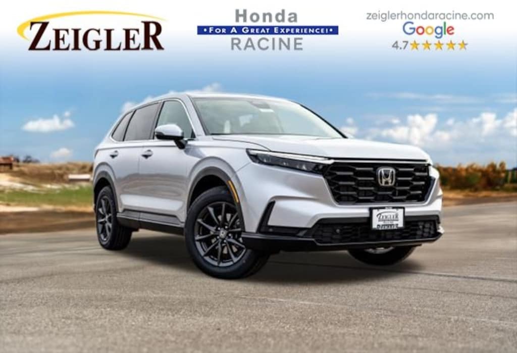 27/31 City/Highway MPG Solar Silver Metallic AWD ++, APPLE CARPLAY, ANDROID AUTO, BLIND SPOT MONITOR, REMOTE START, WIRELESS PHONE CHARGER, ADAPTIVE CRUISE CONTROL, LANE DEPARTURE WARNING, SUNROOF, PARKING SENSORS, POWER LIFTGATE, LEATHER INTERIOR, HEATED SEATS, BACKUP CAMERA, KEYLESS ENTRY, BLUETOOTH. 2026 Honda CR-V EX-L AWD CVT At Zeigler Honda of Racine, we take pride in treating our customers like family, ensuring that your experience is one that you will never forget.Take advantage of our VIP test drive and experience by calling us at (262) 822-3231. We are proud to service customers in Racine, Mt. Pleasant, Milwaukee, Kenosha, and surrounding areas! See dealer for complete details, price may exclude certification, added accessories and/or packages, certain taxes, $399 doc fee, charges and/or fees. Dealer is not responsible for pricing errors. Book values should be considered estimates only. Some of our used vehicles may be subject to unrepaired safety recalls.