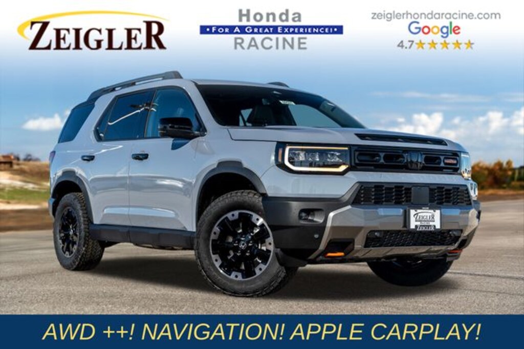Sonic Gray Pearl AWD ++, NAVIGATION, APPLE CARPLAY, ANDROID AUTO, BLIND SPOT MONITOR, REMOTE START, WIRELESS PHONE CHARGER, ADAPTIVE CRUISE CONTROL, LANE DEPARTURE WARNING, PANORAMIC ROOF, PARKING SENSORS, POWER LIFTGATE, LEATHER INTERIOR, HEATED STEERING WHEEL, HEATED SEATS, COOLED SEATS, MEMORY SEATS, BOSE AUDIO, BACKUP CAMERA, KEYLESS ENTRY, BLUETOOTH, All Season Mats (PPO), Cargo Cover, Cargo Net (PPO), Door Sill Films, Function Package, Tow Package. 2026 Honda Passport TrailSport Elite AWD 10-Speed Automatic At Zeigler Honda of Racine, we take pride in treating our customers like family, ensuring that your experience is one that you will never forget.Take advantage of our VIP test drive and experience by calling us at (262) 822-3231. We are proud to service customers in Racine, Mt. Pleasant, Milwaukee, Kenosha, and surrounding areas! See dealer for complete details, price may exclude certification, added accessories and/or packages, certain taxes, $399 doc fee, charges and/or fees. Dealer is not responsible for pricing errors. Book values should be considered estimates only. Some of our used vehicles may be subject to unrepaired safety recalls.