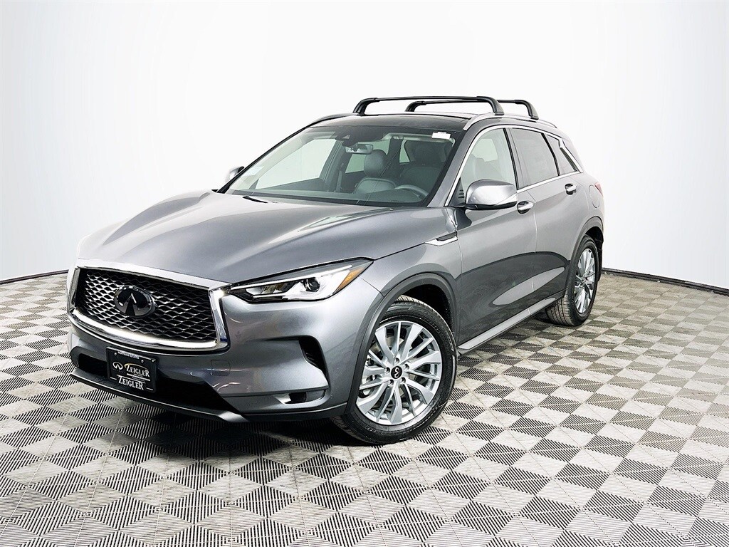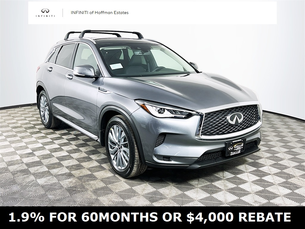 $8,003 below Invoice! Graphite Shadow 2025 INFINITI QX50 LUXE AWD CVT I4 Auto High-beam Headlights, Bose 12-Speaker Premium Audio, Delay-off headlights, Front Bucket Seats, Front Center Armrest, Fully automatic headlights, Heated door mirrors, Heated Front Bucket Seats, Heated front seats, Illuminated entry, Illuminated Kick Plates, Leather steering wheel, Leather-Appointed Seat Trim, Memory seat, Power door mirrors, Power driver seat, Power Liftgate, Power moonroof, Power passenger seat, Power steering, Power windows, Radio: HD Audio System, Remote keyless entry, Splash Guards (Set of 4), Split folding rear seat, Spoiler, Steering wheel mounted audio controls, Telescoping steering wheel, Turn signal indicator mirrors, Wheels: 19" Silver Painted Aluminum Alloy.