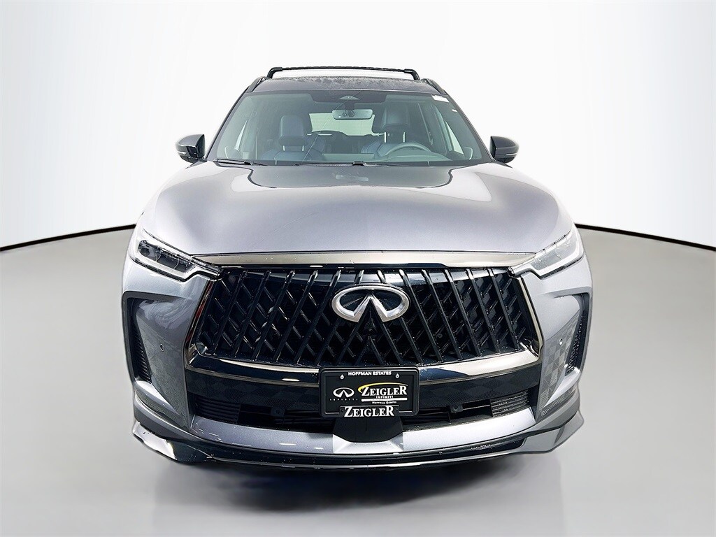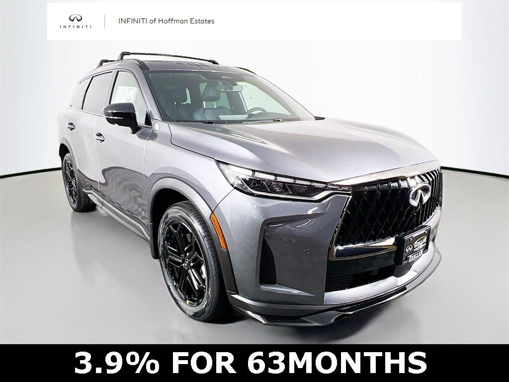 Our Family, serving your Family the ultimate automotive experience. We are conveniently located at 1075 W Golf Road in Hoffman Estates, IL. You can also reach INFINITI of Hoffman Estates any time by filling out our contact form or calling us. The entire staff at INFINITI of Hoffman Estates looks forward to serving you! Online price does not include sales tax, title, doc, or registration. Please call for availability. The vehicle may show on the website and not be in stock . 224-653-2901. ABS brakes, Alloy wheels, Electronic Stability Control, Front dual zone A/C, Heated door mirrors, Heated front seats, Heated rear seats, Illuminated entry, Low tire pressure warning, Power Liftgate, Remote keyless entry, Traction control, 17 Speakers, 3rd row seats: bench, 4-Wheel Disc Brakes, Air Conditioning, AM/FM radio: SiriusXM with 360L, Anti-whiplash front head restraints, Apple CarPlay/Android Auto, Auto High-beam Headlights, Auto tilt-away steering wheel, Auto-dimming door mirrors, Auto-dimming Rear-View mirror, Automatic temperature control, Bose Performance Series 17-Speaker Sound System, Brake assist, Bumpers: body-color, Climate Controlled Front Bucket Seats, Delay-off headlights, Driver door bin, Driver vanity mirror, Dual front impact airbags, Dual front side impact airbags, Emergency communication system: INFINITI InTouch, Four wheel independent suspension, Front anti-roll bar, Front Bucket Seats, Front Center Armrest, Front reading lights, Fully automatic headlights, Garage door transmitter: HomeLink, Heated steering wheel, Knee airbag, Leather Shift Knob, Leather steering wheel, Memory seat, Navigation system: Google Built-in, Occupant sensing airbag, Outside temperature display, Overhead airbag, Overhead console, Panic alarm, Passenger door bin, Passenger vanity mirror, Power door mirrors, Power driver seat, Power moonroof: Panoramic, Power passenger seat, Power steering, Power windows, Radio data system, Radio: Klipsch Premium Audio System, Rain sensing wipers, Rear air conditioning, Rear anti-roll bar, Rear reading lights, Rear side impact airbag, Rear window defroster, Rear window wiper, Reclining 3rd row seat, Security system, Speed control, Speed-sensing steering, Speed-Sensitive Wipers, Split folding rear seat, Spoiler, Steering wheel memory, Steering wheel mounted audio controls, Tachometer, TailorFit-Appointed Seating Surfaces, Telescoping steering wheel, Tilt steering wheel, Trip computer, Turn signal indicator mirrors, Variably intermittent wipers, and Ventilated front seats.