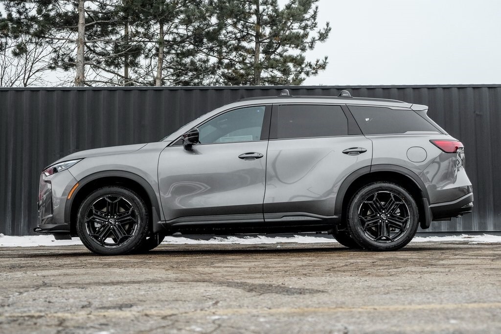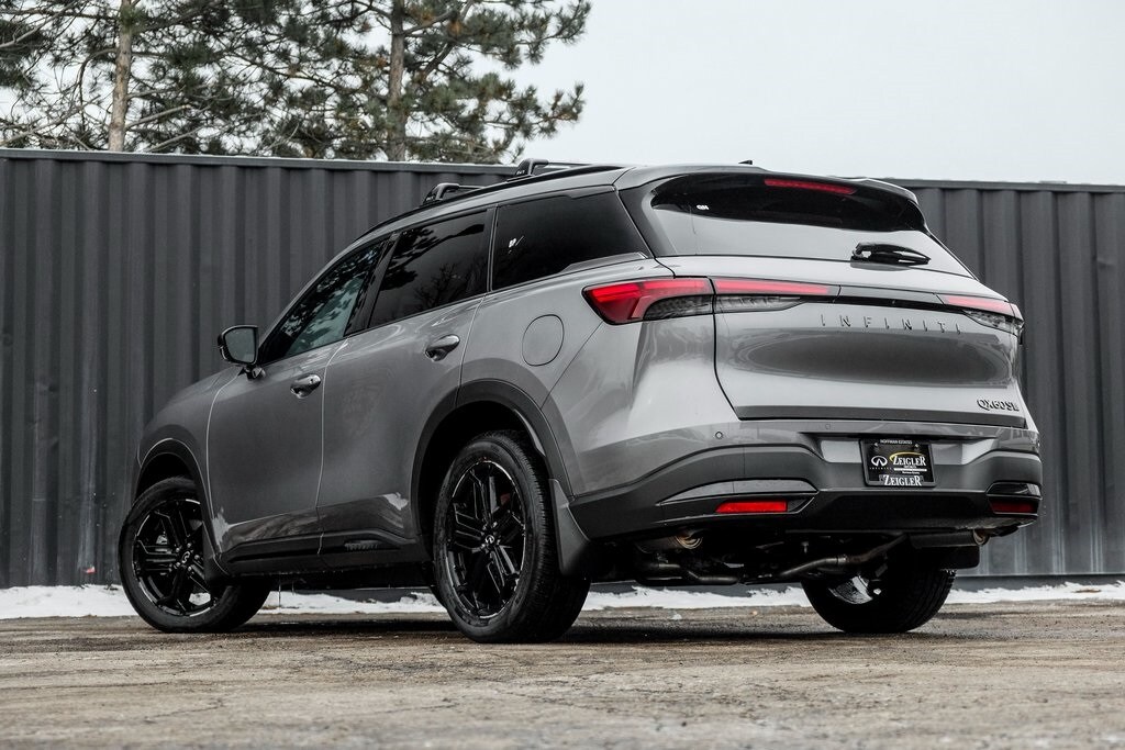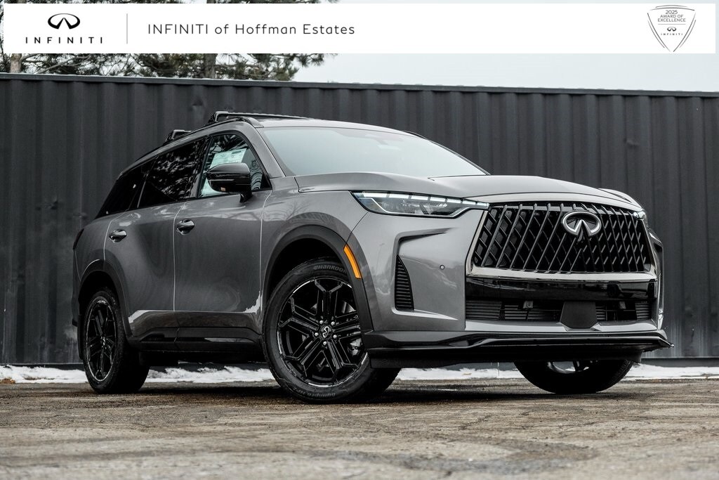 Our Family, serving your Family the ultimate automotive experience. We are conveniently located at 1075 W Golf Road in Hoffman Estates, IL. You can also reach INFINITI of Hoffman Estates any time by filling out our contact form or calling us. The entire staff at INFINITI of Hoffman Estates looks forward to serving you! Online price does not include sales tax, title, doc, or registration. Please call for availability. The vehicle may show on the website and not be in stock . 224-653-2901. Dark Cargo Package (Black Rear Bumper Film, Cargo Blocks, and Cargo Mat), 17 Speakers, 3rd row seats: bench, 4-Wheel Disc Brakes, ABS brakes, Air Conditioning, Alloy wheels, AM/FM radio: SiriusXM with 360L, Anti-whiplash front head restraints, Apple CarPlay/Android Auto, Auto High-beam Headlights, Auto tilt-away steering wheel, Auto-dimming door mirrors, Auto-dimming Rear-View mirror, Automatic temperature control, Black Roof Rail Crossbars, Bose Performance Series 17-Speaker Sound System, Brake assist, Bumpers: body-color, Carpeted Floor Mats with Captains Chairs on 3rd Row Tray, Climate Controlled Front Bucket Seats, Delay-off headlights, Driver door bin, Driver vanity mirror, Dual front impact airbags, Dual front side impact airbags, Electronic Stability Control, Emergency communication system: INFINITI InTouch, Four wheel independent suspension, Front anti-roll bar, Front Bucket Seats, Front Center Armrest, Front dual zone A/C, Front reading lights, Fully automatic headlights, Garage door transmitter: HomeLink, Genuine wood door panel insert, Heated door mirrors, Heated front seats, Heated rear seats, Heated steering wheel, Illuminated entry, INFINITI Radiant Dark Illuminated Kick Plates, Knee airbag, Leather Shift Knob, Leather steering wheel, Literature Kit, Low tire pressure warning, Memory seat, Navigation system: Google Built-in, Occupant sensing airbag, Outside temperature display, Overhead airbag, Overhead console, Panic alarm, Passenger door bin, Passenger vanity mirror, Power door mirrors, Power driver seat, Power Liftgate, Power moonroof: Panoramic, Power passenger seat, Power steering, Power windows, Radio data system, Radio: Klipsch Premium Audio System, Rain sensing wipers, Rear air conditioning, Rear anti-roll bar, Rear reading lights, Rear side impact airbag, Rear window defroster, Rear window wiper, Reclining 3rd row seat, Remote keyless entry, Security system, Speed control, Speed-sensing steering, Speed-Sensitive Wipers, Splash Guards, Split folding rear seat, Spoiler, Steering wheel memory, Steering wheel mounted audio controls, Tachometer, Tailorfit-Appointed Seating Surfaces, Telescoping steering wheel, Tilt steering wheel, Traction control, Trip computer, Turn signal indicator mirrors, Variably intermittent wipers, Ventilated front seats, and Wheels: 20" x 8J Unique Sporty Machined Aluminum Alloy.