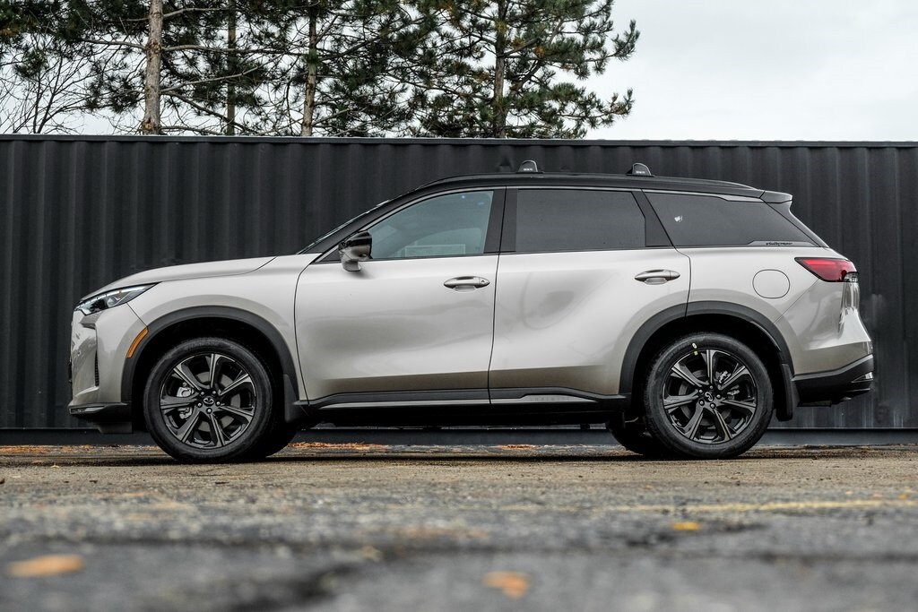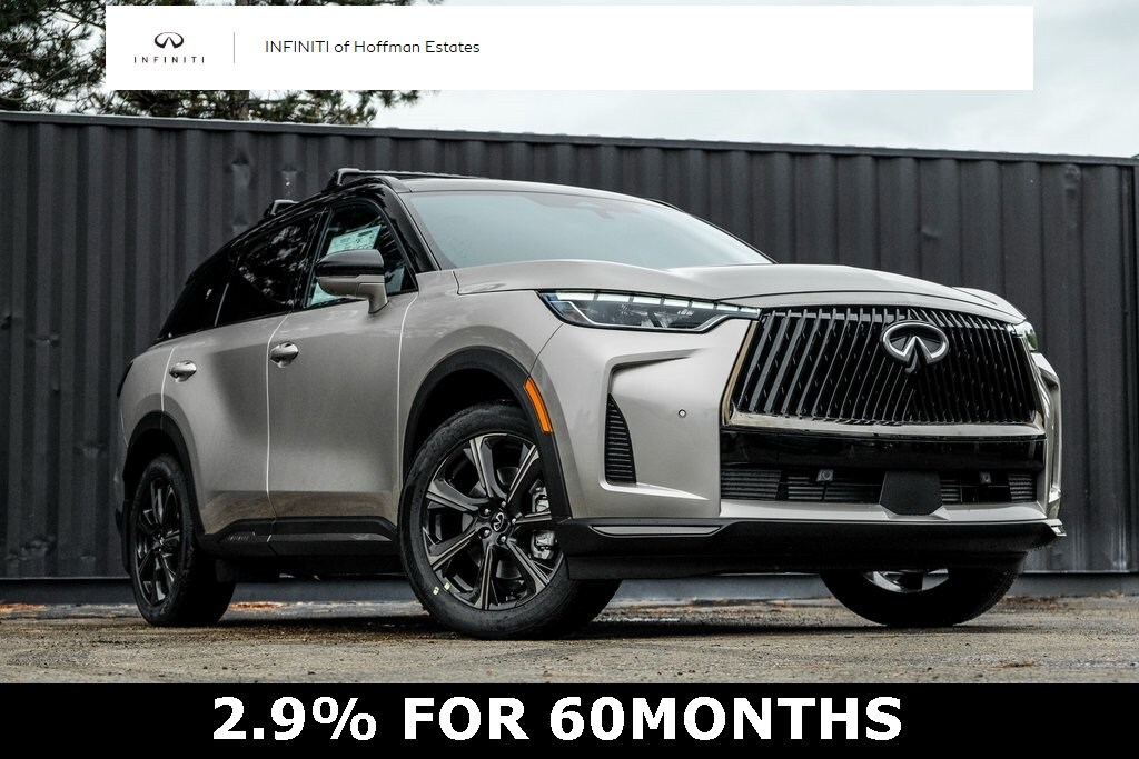 Our Family, serving your Family the ultimate automotive experience. We are conveniently located at 1075 W Golf Road in Hoffman Estates, IL. You can also reach INFINITI of Hoffman Estates any time by filling out our contact form or calling us. The entire staff at INFINITI of Hoffman Estates looks forward to serving you! Online price does not include sales tax, title, doc, or registration. Please call for availability. The vehicle may show on the website and not be in stock . 224-653-2901. Dark Cargo Package (Black Rear Bumper Film, Cargo Blocks, Cargo Mat, Cargo Net, and Medic Kit), 2-Tone Premium Paint, 20 Speakers, 3rd row seats: bench, 4-Wheel Disc Brakes, ABS brakes, Air Conditioning, Alloy wheels, AM/FM radio: SiriusXM with 360L, Anti-whiplash front head restraints, Apple CarPlay/Android Auto, Auto High-beam Headlights, Auto tilt-away steering wheel, Auto-dimming door mirrors, Auto-dimming Rear-View mirror, Automatic temperature control, Black Roof Rail Crossbars, Bose Performance Series 17-Speaker Sound System, Brake assist, Bumpers: body-color, Climate Controlled Massaging Front Bucket Seats, Delay-off headlights, Driver door bin, Driver vanity mirror, Dual front impact airbags, Dual front side impact airbags, Electronic Stability Control, Emergency communication system: INFINITI InTouch, Four wheel independent suspension, Front anti-roll bar, Front Bucket Seats, Front Center Armrest, Front dual zone A/C, Front reading lights, Fully automatic headlights, Garage door transmitter: HomeLink, Genuine wood door panel insert, Heads-Up Display, Heated door mirrors, Heated front seats, Heated rear seats, Heated steering wheel, Illuminated entry, INFINITI Radiant Dark Illum Cargo Scuff Plates, Knee airbag, Leather Shift Knob, Leather steering wheel, Low tire pressure warning, Memory seat, Navigation system: Google Built-in, Occupant sensing airbag, Outside temperature display, Overhead airbag, Overhead console, Panic alarm, Passenger door bin, Passenger vanity mirror, Power door mirrors, Power driver seat, Power Liftgate, Power moonroof: Panoramic, Power passenger seat, Power steering, Power windows, Radio data system, Radio: Klipsch Reference Premiere Audio System, Rain sensing wipers, Rear air conditioning, Rear anti-roll bar, Rear reading lights, Rear side impact airbag, Rear window defroster, Rear window wiper, Reclining 3rd row seat, Remote keyless entry, Security system, Semi Aniline Leather-Appointed Seating Surfaces, Speed control, Speed-sensing steering, Speed-Sensitive Wipers, Splash Guards, Split folding rear seat, Spoiler, Steering wheel memory, Steering wheel mounted audio controls, Tachometer, Telescoping steering wheel, Tilt steering wheel, Traction control, Trip computer, Turn signal indicator mirrors, Variably intermittent wipers, Ventilated front seats, and Wheels: 20" x 8J Luxury Machined Aluminum Alloy.