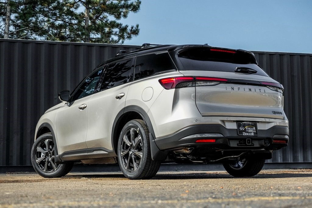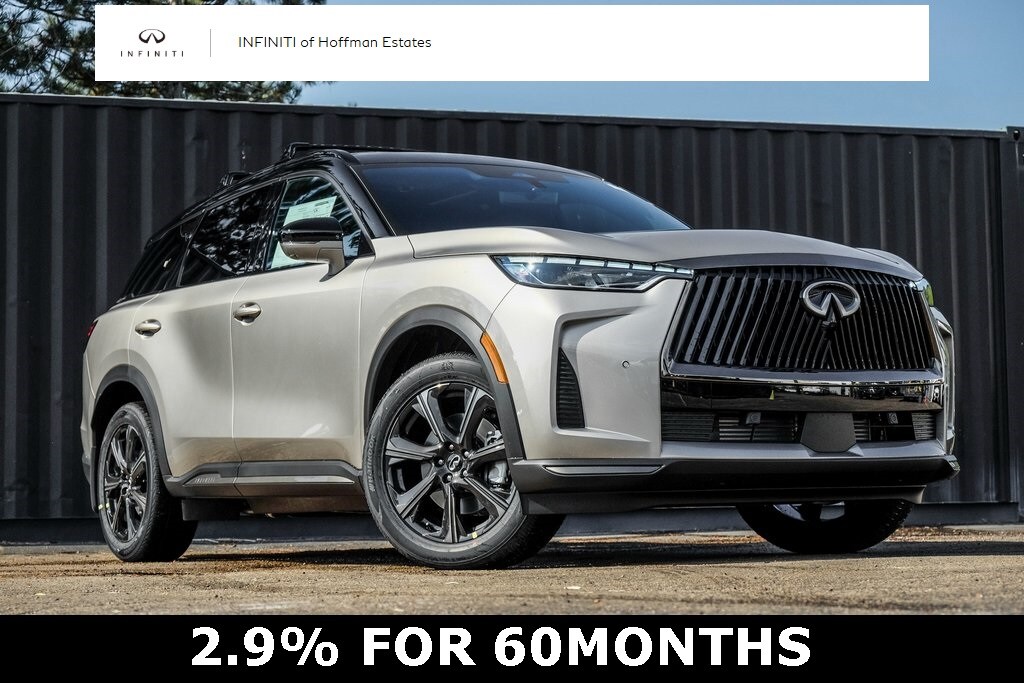 Our Family, serving your Family the ultimate automotive experience. We are conveniently located at 1075 W Golf Road in Hoffman Estates, IL. You can also reach INFINITI of Hoffman Estates any time by filling out our contact form or calling us. The entire staff at INFINITI of Hoffman Estates looks forward to serving you! Online price does not include sales tax, title, doc, or registration. Please call for availability. The vehicle may show on the website and not be in stock . 224-653-2901. Dark Cargo Package (Black Rear Bumper Film, Cargo Blocks, Cargo Mat, Cargo Net, and Medic Kit), 2-Tone Premium Paint, 20 Speakers, 3rd row seats: bench, 4-Wheel Disc Brakes, ABS brakes, Air Conditioning, Alloy wheels, AM/FM radio: SiriusXM with 360L, Anti-whiplash front head restraints, Apple CarPlay/Android Auto, Auto High-beam Headlights, Auto tilt-away steering wheel, Auto-dimming door mirrors, Auto-dimming Rear-View mirror, Automatic temperature control, Black Roof Rail Crossbars, Bose Performance Series 17-Speaker Sound System, Brake assist, Bumpers: body-color, Climate Controlled Massaging Front Bucket Seats, Delay-off headlights, Driver door bin, Driver vanity mirror, Dual front impact airbags, Dual front side impact airbags, Electronic Stability Control, Emergency communication system: INFINITI InTouch, Four wheel independent suspension, Front anti-roll bar, Front Bucket Seats, Front Center Armrest, Front dual zone A/C, Front reading lights, Fully automatic headlights, Garage door transmitter: HomeLink, Genuine wood door panel insert, Heads-Up Display, Heated door mirrors, Heated front seats, Heated rear seats, Heated steering wheel, Illuminated entry, INFINITI Radiant Dark Illum Cargo Scuff Plates, Knee airbag, Leather Shift Knob, Leather steering wheel, Low tire pressure warning, Memory seat, Navigation system: Google Built-in, Occupant sensing airbag, Outside temperature display, Overhead airbag, Overhead console, Panic alarm, Passenger door bin, Passenger vanity mirror, Power door mirrors, Power driver seat, Power Liftgate, Power moonroof: Panoramic, Power passenger seat, Power steering, Power windows, Radio data system, Radio: Klipsch Reference Premiere Audio System, Rain sensing wipers, Rear air conditioning, Rear anti-roll bar, Rear reading lights, Rear side impact airbag, Rear window defroster, Rear window wiper, Reclining 3rd row seat, Remote keyless entry, Security system, Semi Aniline Leather-Appointed Seating Surfaces, Speed control, Speed-sensing steering, Speed-Sensitive Wipers, Splash Guards, Split folding rear seat, Spoiler, Steering wheel memory, Steering wheel mounted audio controls, Tachometer, Telescoping steering wheel, Tilt steering wheel, Traction control, Trip computer, Turn signal indicator mirrors, Variably intermittent wipers, Ventilated front seats, and Wheels: 20" x 8J Luxury Machined Aluminum Alloy.