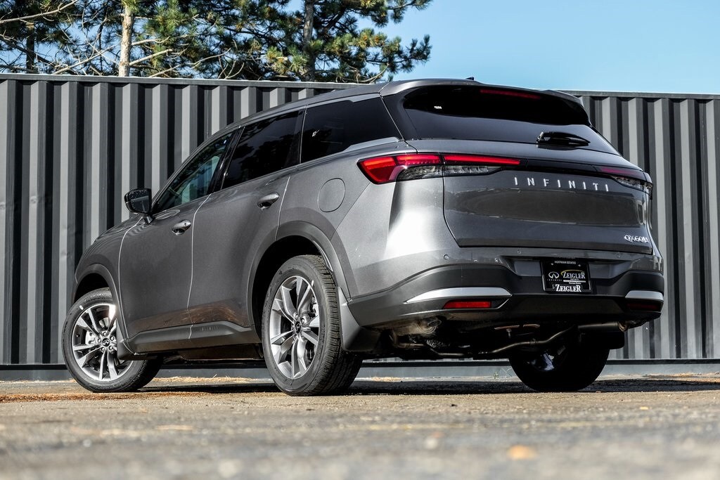 Our Family, serving your Family the ultimate automotive experience. We are conveniently located at 1075 W Golf Road in Hoffman Estates, IL. You can also reach INFINITI of Hoffman Estates any time by filling out our contact form or calling us. The entire staff at INFINITI of Hoffman Estates looks forward to serving you! Online price does not include sales tax, title, doc, or registration. Please call for availability. The vehicle may show on the website and not be in stock . 224-653-2901. 3rd row seats: bench, 4-Wheel Disc Brakes, 9 Speakers, ABS brakes, Air Conditioning, Alloy wheels, AM/FM radio: SiriusXM with 360L, Anti-whiplash front head restraints, Apple CarPlay/Android Auto, Auto High-beam Headlights, Auto-dimming Rear-View mirror, Automatic temperature control, Blind Spot Warning, Brake assist, Bumpers: body-color, Delay-off headlights, Driver door bin, Driver vanity mirror, Dual front impact airbags, Dual front side impact airbags, Electronic Stability Control, Emergency communication system: INFINITI InTouch, Four wheel independent suspension, Front anti-roll bar, Front Bucket Seats, Front Center Armrest, Front dual zone A/C, Front reading lights, Fully automatic headlights, Heated door mirrors, Heated Front Bucket Seats, Heated front seats, Heated steering wheel, Illuminated entry, Knee airbag, Leather Shift Knob, Leather steering wheel, Low tire pressure warning, Memory seat, Navigation system: Google Built-in, Occupant sensing airbag, Outside temperature display, Overhead airbag, Overhead console, Panic alarm, Passenger door bin, Passenger vanity mirror, Power door mirrors, Power driver seat, Power Liftgate, Power moonroof: Panoramic, Power passenger seat, Power steering, Power windows, Radio data system, Radio: AM/FM Audio System, Rain sensing wipers, Rear air conditioning, Rear anti-roll bar, Rear Parking Sensors, Rear reading lights, Rear seat center armrest, Rear side impact airbag, Rear window defroster, Rear window wiper, Reclining 3rd row seat, Remote keyless entry, Security system, Speed control, Speed-sensing steering, Speed-Sensitive Wipers, Split folding rear seat, Spoiler, Steering wheel mounted audio controls, Tachometer, TailorFit-Appointed Seating Surfaces, Telescoping steering wheel, Tilt steering wheel, Traction control, Trip computer, Turn signal indicator mirrors, Variably intermittent wipers, and Wheels: 20" x 8J Sporty Machined Aluminum Alloy.