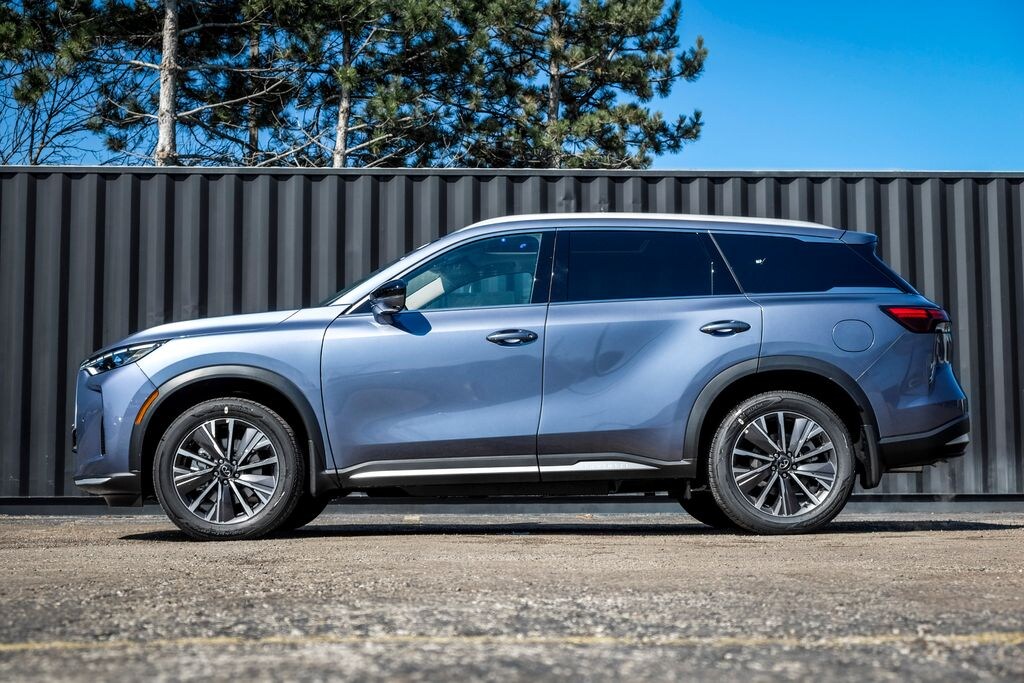 Our Family, serving your Family the ultimate automotive experience. We are conveniently located at 1075 W Golf Road in Hoffman Estates, IL. You can also reach INFINITI of Hoffman Estates any time by filling out our contact form or calling us. The entire staff at INFINITI of Hoffman Estates looks forward to serving you! Online price does not include sales tax, title, doc, or registration. Please call for availability. The vehicle may show on the website and not be in stock . 224-653-2901. Cargo Package (Cargo Net, Clear Rear Bumper Film, and Medic Kit), 17 Speakers, 3rd row seats: bench, 4-Wheel Disc Brakes, ABS brakes, Air Conditioning, Alloy wheels, AM/FM radio: SiriusXM with 360L, Anti-whiplash front head restraints, Apple CarPlay/Android Auto, Auto High-beam Headlights, Auto tilt-away steering wheel, Auto-dimming door mirrors, Auto-dimming Rear-View mirror, Automatic temperature control, Bose Performance Series 17-Speaker Sound System, Brake assist, Bumpers: body-color, Climate Controlled Front Bucket Seats, Delay-off headlights, Driver door bin, Driver vanity mirror, Dual front impact airbags, Dual front side impact airbags, Electronic Stability Control, Emergency communication system: INFINITI InTouch, Four wheel independent suspension, Front anti-roll bar, Front Bucket Seats, Front Center Armrest, Front dual zone A/C, Front reading lights, Fully automatic headlights, Garage door transmitter: HomeLink, Heated door mirrors, Heated front seats, Heated rear seats, Heated steering wheel, Illuminated entry, Knee airbag, Leather Shift Knob, Leather steering wheel, Low tire pressure warning, Memory seat, Navigation system: Google Built-in, Occupant sensing airbag, Outside temperature display, Overhead airbag, Overhead console, Panic alarm, Passenger door bin, Passenger vanity mirror, Power door mirrors, Power driver seat, Power Liftgate, Power moonroof: Panoramic, Power passenger seat, Power steering, Power windows, Premium Paint, Radio data system, Radio: Klipsch Premium Audio System, Rain sensing wipers, Rear air conditioning, Rear anti-roll bar, Rear reading lights, Rear seat center armrest, Rear side impact airbag, Rear window defroster, Rear window wiper, Reclining 3rd row seat, Remote keyless entry, Security system, Speed control, Speed-sensing steering, Speed-Sensitive Wipers, Splash Guards, Split folding rear seat, Spoiler, Steering wheel memory, Steering wheel mounted audio controls, Tachometer, Tailorfit-Appointed Seating Surfaces, Telescoping steering wheel, Tilt steering wheel, Traction control, Trip computer, Turn signal indicator mirrors, Variably intermittent wipers, Ventilated front seats, and Wheels: 20" x 8J Machined Aluminum Alloy.