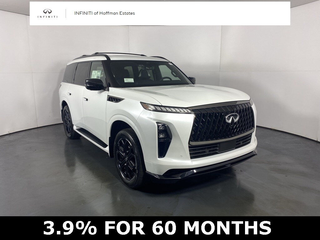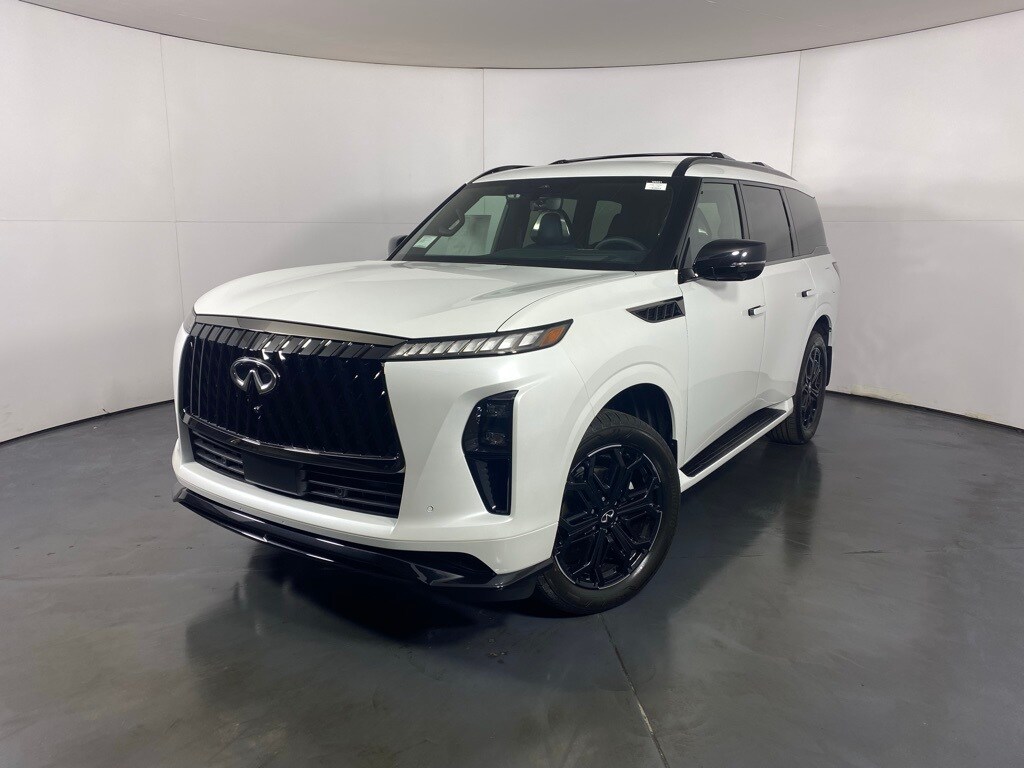 $1,400 below Invoice! Radiant White 2026 INFINITI QX80 SPORT 4WD 9-Speed Automatic 3.5L V6 DOHC 24V ABS brakes, Alloy wheels, Compass, Electronic Stability Control, Front dual zone A/C, Heated door mirrors, Heated front seats, Heated rear seats, Illuminated entry, Low tire pressure warning, Power Liftgate, Power moonroof, Remote keyless entry, Traction control.