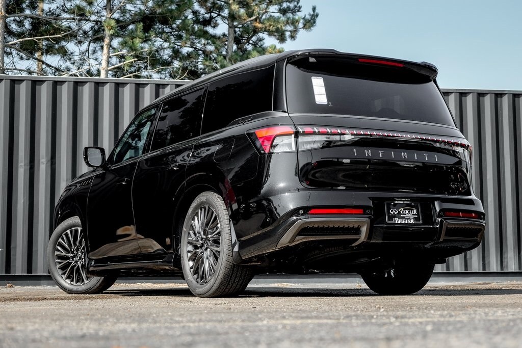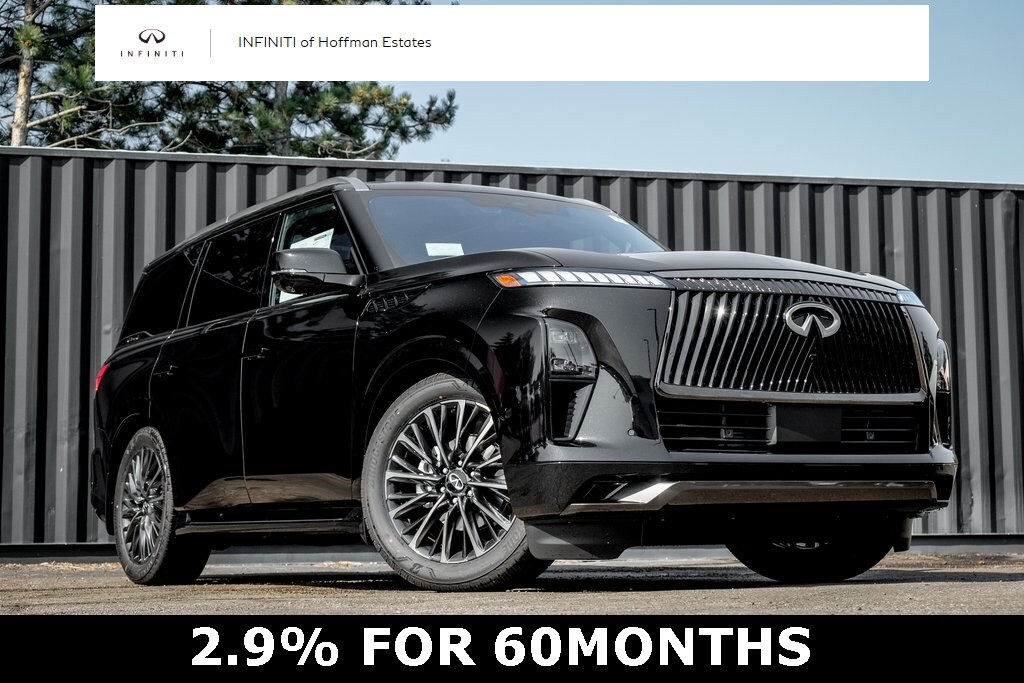 Our Family, serving your Family the ultimate automotive experience. We are conveniently located at 1075 W Golf Road in Hoffman Estates, IL. You can also reach INFINITI of Hoffman Estates any time by filling out our contact form or calling us. The entire staff at INFINITI of Hoffman Estates looks forward to serving you! Online price does not include sales tax, title, doc, or registration. Please call for availability. The vehicle may show on the website and not be in stock . 224-653-2901. Premium Cargo Package (Cargo Blocks/Stabilizers, Cargo Shelf/Barrier, Carpeted Cargo Area Protector, Console Net, and Soft-Sided Cargo Cooler), 3rd row seats: bench, 4-Wheel Disc Brakes, ABS brakes, Adaptive suspension, Air Conditioning, Alloy wheels, AM/FM radio: SiriusXM with 360L, Anti-whiplash front head restraints, Apple CarPlay/Android Auto, Audio memory, Auto High-beam Headlights, Auto tilt-away steering wheel, Auto-dimming door mirrors, Auto-dimming Rear-View mirror, Auto-leveling suspension, Automatic temperature control, Brake assist, Bumpers: body-color, Compass, Delay-off headlights, Driver door bin, Driver vanity mirror, Dual front impact airbags, Dual front side impact airbags, Electronic Stability Control, Emergency communication system: INFINITI InTouch, Four wheel independent suspension, Front anti-roll bar, Front Bucket Seats, Front Center Armrest, Front dual zone A/C, Front reading lights, Fully automatic headlights, Garage door transmitter: myQ Connected Garage, Genuine wood dashboard insert, Genuine wood door panel insert, Heads-Up Display, Heated door mirrors, Heated front seats, Heated rear seats, Heated steering wheel, Htd & Climate Controlled Fr Bucket Seats w/Massage, HVAC memory, Illuminated entry, Knee airbag, Leather steering wheel, Low tire pressure warning, Memory seat, Navigation system: Google Built-in, Occupant sensing airbag, Outside temperature display, Overhead airbag, Overhead console, Panic alarm, Passenger door bin, Passenger vanity mirror, Power door mirrors, Power driver seat, Power Liftgate, Power moonroof, Power passenger seat, Power steering, Power windows, Radio data system, Radio: Klipsch Reference Premiere Audio System, Rain sensing wipers, Rear air conditioning, Rear anti-roll bar, Rear reading lights, Rear seat center armrest, Rear window defroster, Rear window wiper, Reclining 3rd row seat, Remote keyless entry, Security system, Semi-Aniline Premium Leather Seating Surfaces, Speed control, Speed-sensing steering, Splash Guards, Split folding rear seat, Spoiler, Steering wheel memory, Steering wheel mounted audio controls, Tachometer, Telescoping steering wheel, Tilt steering wheel, Traction control, Trip computer, Turn signal indicator mirrors, Variably intermittent wipers, Ventilated front seats, Ventilated rear seats, and Wheels: 22" x 8.5J Cast Aluminum-Alloy.