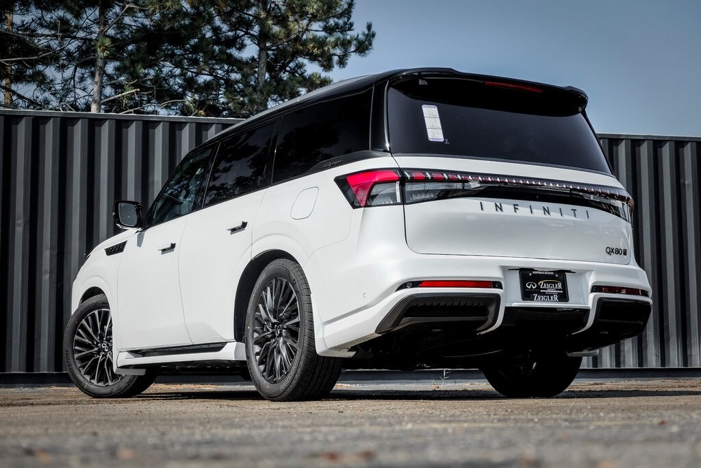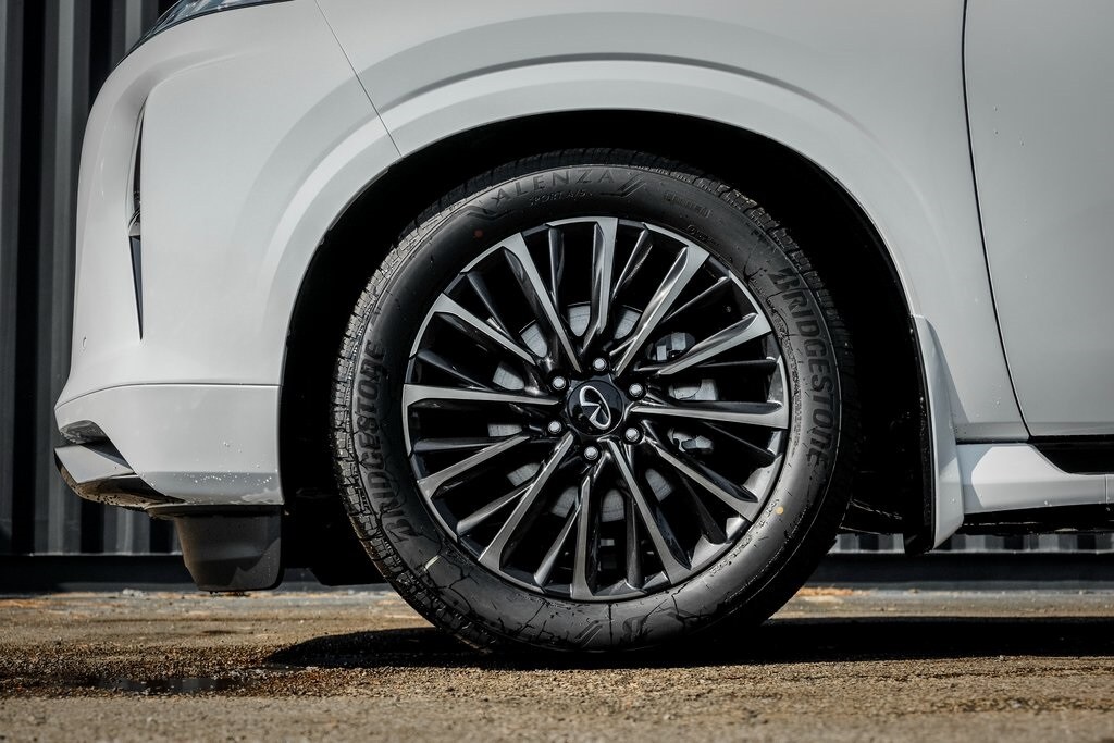 Our Family, serving your Family the ultimate automotive experience. We are conveniently located at 1075 W Golf Road in Hoffman Estates, IL. You can also reach INFINITI of Hoffman Estates any time by filling out our contact form or calling us. The entire staff at INFINITI of Hoffman Estates looks forward to serving you! Online price does not include sales tax, title, doc, or registration. Please call for availability. The vehicle may show on the website and not be in stock . 224-653-2901. Black Interior Lighting Package (INFINITI Radiant Black Cargo Scuff Plates and Panoramic Illuminated Headliner), Premium Cargo Package (Cargo Blocks/Stabilizers, Cargo Shelf/Barrier, Carpeted Cargo Area Protector, Console Net, and Soft-Sided Cargo Cooler), 3rd row seats: bench, 4-Wheel Disc Brakes, ABS brakes, Adaptive suspension, Air Conditioning, Alloy wheels, AM/FM radio: SiriusXM with 360L, Anti-whiplash front head restraints, Apple CarPlay/Android Auto, Audio memory, Auto High-beam Headlights, Auto tilt-away steering wheel, Auto-dimming door mirrors, Auto-dimming Rear-View mirror, Auto-leveling suspension, Automatic temperature control, Brake assist, Bumpers: body-color, Compass, Delay-off headlights, Driver door bin, Driver vanity mirror, Dual front impact airbags, Dual front side impact airbags, Electronic Stability Control, Emergency communication system: INFINITI InTouch, Four wheel independent suspension, Front anti-roll bar, Front Bucket Seats, Front Center Armrest, Front dual zone A/C, Front reading lights, Fully automatic headlights, Garage door transmitter: myQ Connected Garage, Genuine wood dashboard insert, Genuine wood door panel insert, Heads-Up Display, Heated door mirrors, Heated front seats, Heated rear seats, Heated steering wheel, Htd & Climate Controlled Fr Bucket Seats w/Massage, HVAC memory, Illuminated entry, Knee airbag, Leather steering wheel, Low tire pressure warning, Memory seat, Navigation system: Google Built-in, Occupant sensing airbag, Outside temperature display, Overhead airbag, Overhead console, Panic alarm, Passenger door bin, Passenger vanity mirror, Power door mirrors, Power driver seat, Power Liftgate, Power moonroof, Power passenger seat, Power steering, Power windows, Radio data system, Radio: Klipsch Reference Premiere Audio System, Rain sensing wipers, Rear air conditioning, Rear anti-roll bar, Rear reading lights, Rear seat center armrest, Rear window defroster, Rear window wiper, Reclining 3rd row seat, Remote keyless entry, Security system, Semi-Aniline Premium Leather Seating Surfaces, Speed control, Speed-sensing steering, Splash Guards, Split folding rear seat, Spoiler, Steering wheel memory, Steering wheel mounted audio controls, Tachometer, Telescoping steering wheel, Tilt steering wheel, Traction control, Trip computer, Turn signal indicator mirrors, Two-Tone Super Premium Paint, Variably intermittent wipers, Ventilated front seats, Ventilated rear seats, and Wheels: 22" x 8.5J Cast Aluminum-Alloy.