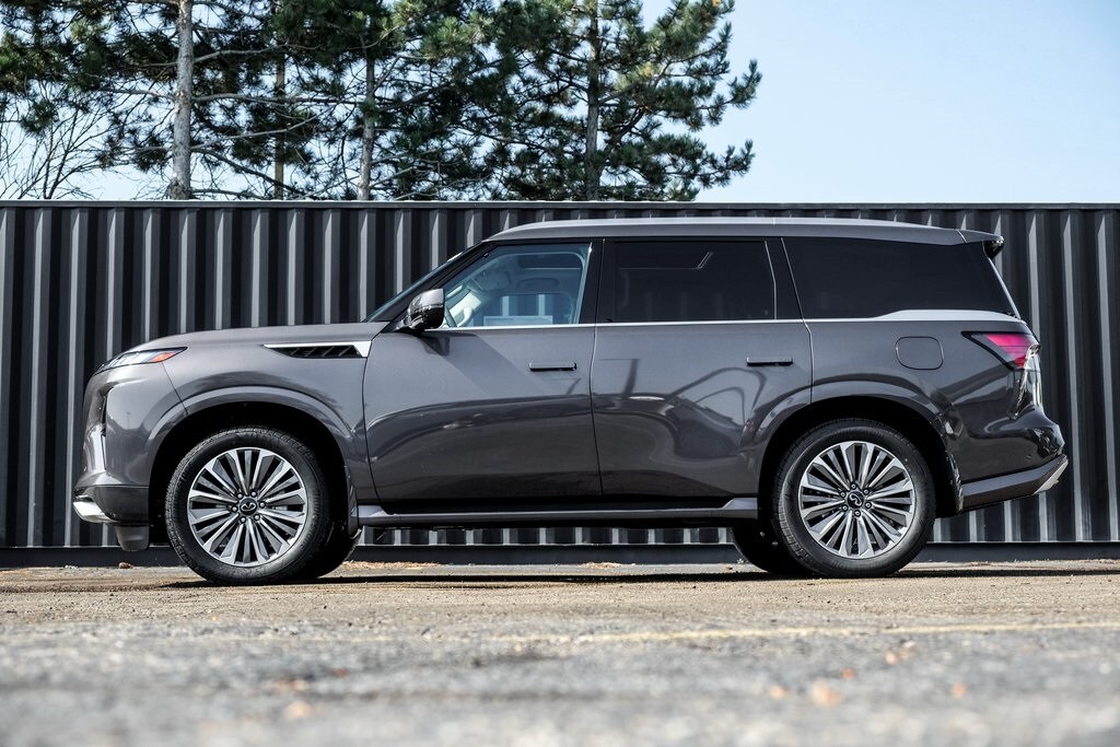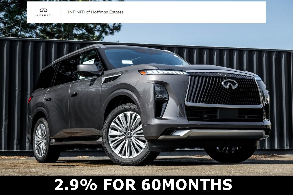 Our Family, serving your Family the ultimate automotive experience. We are conveniently located at 1075 W Golf Road in Hoffman Estates, IL. You can also reach INFINITI of Hoffman Estates any time by filling out our contact form or calling us. The entire staff at INFINITI of Hoffman Estates looks forward to serving you! Online price does not include sales tax, title, doc, or registration. Please call for availability. The vehicle may show on the website and not be in stock . 224-653-2901. Cargo Package (Cargo Blocks/Stabilizers, Cargo Net, Carpeted Cargo Area Protector, Console Net, and Soft-Sided Cargo Cooler), 14 Speakers, 3rd row seats: bench, 4-Wheel Disc Brakes, ABS brakes, Adaptive suspension, Air Conditioning, Alloy wheels, AM/FM radio: SiriusXM with 360L, Anti-whiplash front head restraints, Apple CarPlay/Android Auto, Audio memory, Auto High-beam Headlights, Auto tilt-away steering wheel, Auto-dimming door mirrors, Auto-dimming Rear-View mirror, Auto-leveling suspension, Automatic temperature control, Brake assist, Bumpers: body-color, Compass, Delay-off headlights, Driver door bin, Driver vanity mirror, Dual front impact airbags, Dual front side impact airbags, Electronic Stability Control, Emergency communication system: INFINITI InTouch, Four wheel independent suspension, Front anti-roll bar, Front Bucket Seats, Front Center Armrest, Front dual zone A/C, Front reading lights, Fully automatic headlights, Garage door transmitter: myQ Connected Garage, Heads-Up Display, Heated & Climate Controlled Front Bucket Seats, Heated door mirrors, Heated front seats, Heated rear seats, Heated steering wheel, HVAC memory, Illuminated entry, INFINITI Radiant Illuminated Silver Kick Plates, Knee airbag, Leather Seating Surfaces, Leather steering wheel, Low tire pressure warning, Memory seat, Navigation system: Google Built-in, Occupant sensing airbag, Outside temperature display, Overhead airbag, Overhead console, Panic alarm, Passenger door bin, Passenger vanity mirror, Power door mirrors, Power driver seat, Power Liftgate, Power moonroof, Power passenger seat, Power steering, Power windows, Premium Paint, Radio data system, Radio: Klipsch Premium Audio System, Rain sensing wipers, Rear air conditioning, Rear anti-roll bar, Rear reading lights, Rear seat center armrest, Rear window defroster, Rear window wiper, Reclining 3rd row seat, Remote keyless entry, Security system, Speed control, Speed-sensing steering, Splash Guards, Split folding rear seat, Spoiler, Steering wheel memory, Steering wheel mounted audio controls, Tachometer, Telescoping steering wheel, Tilt steering wheel, Traction control, Trip computer, Turn signal indicator mirrors, USB Charging Cable Set, Variably intermittent wipers, Ventilated front seats, Ventilated rear seats, and Wheels: 22" x 8.5J Cast Aluminum Alloy.