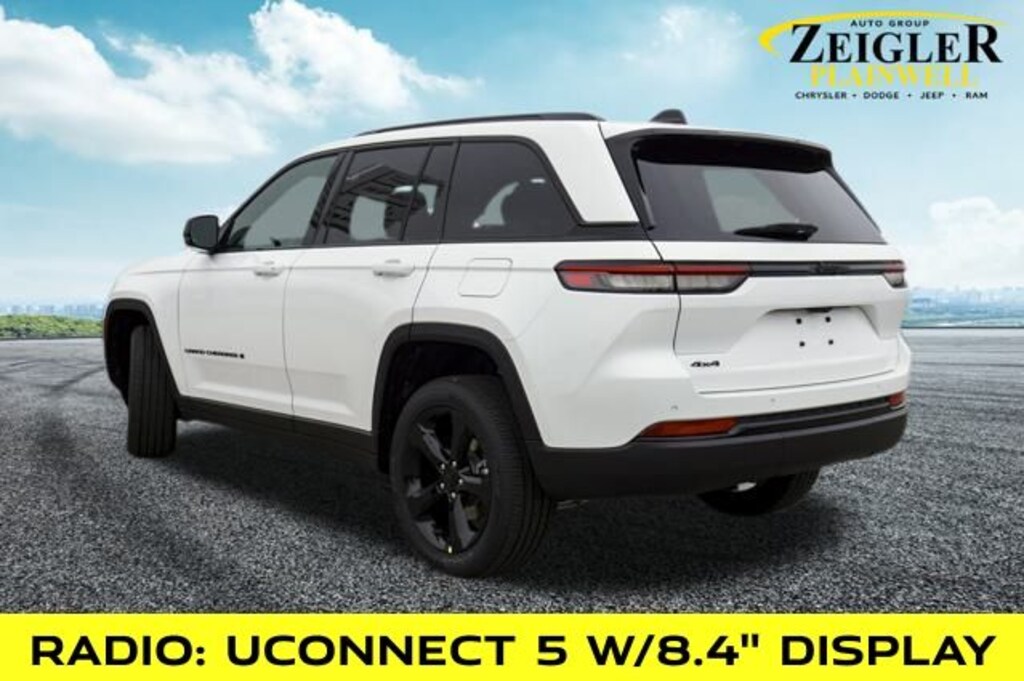 Bright White Clearcoat 2025 Jeep Grand Cherokee Altitude X 4x4 4WD 8-Speed Automatic 3.6L V6 24V VVT 4WD, 115V Auxiliary Power Outlet, 18" 5-Spoke Painted Aluminum Wheels, Altitude X, AM/FM radio: SiriusXM, Black Headliner, Brake assist, Capri Leatherette/Suede Seats, Delete Laredo Badge, Electronic Stability Control, Emergency communication system, Gloss Black Exterior Accents, Heated Front Seats, Heated Steering Wheel, ParkView Rear Back-Up Camera, Power Liftgate, Power Sunroof, Quick Order Package 23M Altitude X, Radio: Uconnect 5 w/8.4" Display, Rain Sensitive Windshield Wipers, Remote keyless entry, Security system, Selectable Tire Fill Alert, Steering wheel mounted audio controls, Wheels: 18" x 8" Fully Painted Aluminum 1, Wireless Charging Pad.