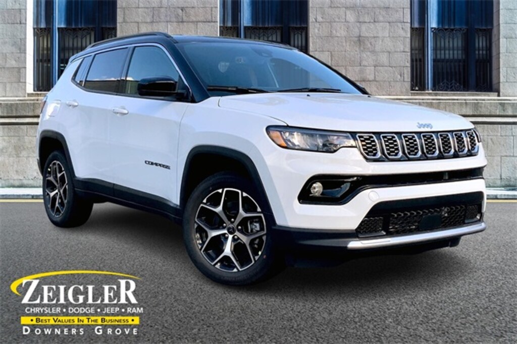 2026 Jeep Compass Limited 4WD 8-Speed Automatic with Overdrive I4 Bright White Clearcoat 4WD. 24/32 City/Highway MPG Call our Sales department now! 630-241-5500 . Special financing is available in lieu of rebates. Price is good on in stock units and expires at the end of the month or when current incentives change. Zeigler price does not include tax, title, or license. Dealer is not responsible for pricing errors. Images may be stock factory photos and colors may vary. Please contact our sales department for more information.To View Details Click Window Sticker! Price includes: $500 - 2026 National Retail Bonus Cash . Exp. 11/03/2025