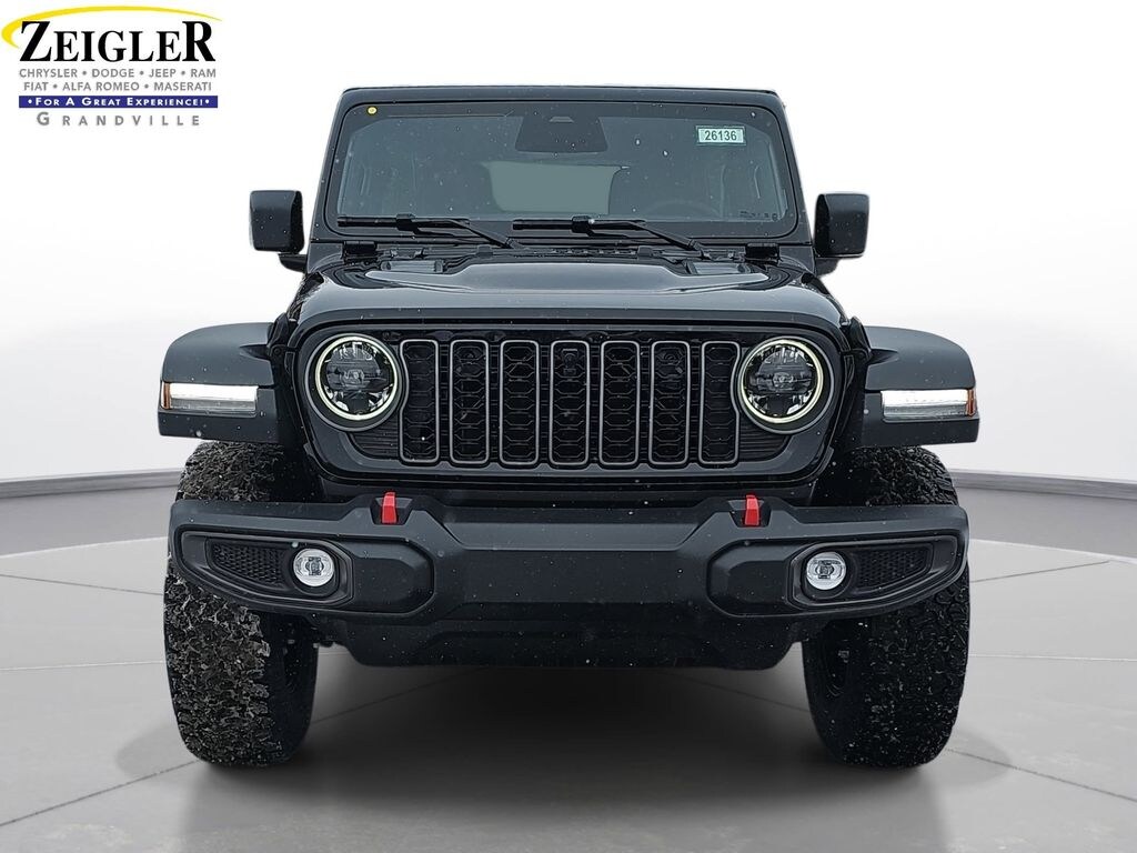 12.3" Touchscreen Display, 4G LTE Wi-Fi Hot Spot, Apple CarPlay, Auto High Beam Headlamp Control, Auto-Dimming Rear-View Mirror, Blind Spot and Cross Path Detection, Connected Travel and Traffic Services, Connectivity - US/Canada, Convenience Group, For More Info, Call 800-643-2112, Google Android Auto, GPS Navigation, HD Radio, Heated Front Seats, Heated Steering Wheel, Integrated Center Stack Radio, Integrated Off-Road Camera, Integrated Voice Command with Bluetooth, ParkSense Rear Park Assist System, Quick Order Package 24R Rubicon, Radio: Uconnect 5 Navigation with 12.3" Display, Safety Group, SiriusXM Radio Service, SiriusXM with 360L, Technology Group, Universal Garage Door Opener, 4-Wheel Disc Brakes, 4.10 Rear Axle Ratio, 8 Speakers, ABS brakes, Air Conditioning, Alloy wheels, Alpine Premium Audio System, AM/FM radio: SiriusXM with 360L, Apple CarPlay/Android Auto, Automatic temperature control, Aux Battery, Auxiliary Switches, Body Color 3-Piece Hard Top, Brake assist, Class II Receiver Hitch, Cloth Low-Back Bucket Seats, Compass, Delay-off headlights, Driver door bin, Driver vanity mirror, Dual front impact airbags, Dual front side impact airbags, Electronic Stability Control, Emergency communication system: Jeep Connect, Freedom Panel Storage Bag, Front anti-roll bar, Front Bucket Seats, Front Center Armrest w/Storage, Front dual zone A/C, Front fog lights, Front reading lights, Fully automatic headlights, Heated door mirrors, Illuminated entry, Integrated roll-over protection, Low tire pressure warning, MOPAR All-Weather Floor Mats, Myflexcare Service Plan, Non-Lock Fuel Cap Without Discriminator, Occupant sensing airbag, Outside temperature display, Overhead airbag, Panic alarm, ParkView Rear Back-Up Camera, Passenger door bin, Passenger vanity mirror, Performance Suspension, Power door mirrors, Power steering, Power windows, Radio data system, Radio: Uconnect 5 with 12.3" Display, Rear anti-roll bar, Rear reading lights, Rear Window Defroster, Rear Window Wiper/Washer, Remote keyless entry, Security system, Speed control, Split folding rear seat, Steering wheel mounted audio controls, Stop-Start Dual Battery System, Tachometer, Telescoping steering wheel, Tilt steering wheel, Traction control, Trip computer, Variably intermittent wipers, Voltmeter, Wheels: 17" x 7.5" Machined/Painted Black, 12.3" Touchscreen Display, 4G LTE Wi-Fi Hot Spot, Apple CarPlay, Auto High Beam Headlamp Control, Auto-Dimming Rear-View Mirror, Blind Spot and Cross Path Detection, Connected Travel and Traffic Services, Connectivity - US/Canada, Convenience Group, For More Info, Call 800-643-2112, Google Android Auto, GPS Navigation, HD Radio, Heated Front Seats, Heated Steering Wheel, Integrated Center Stack Radio, Integrated Off-Road Camera, Integrated Voice Command with Bluetooth, ParkSense Rear Park Assist System, Quick Order Package 24R Rubicon, Radio: Uconnect 5 Navigation with 12.3" Display, Safety Group, SiriusXM Radio Service, SiriusXM with 360L, Technology Group, Universal Garage Door Opener. 18/23 City/Highway MPG