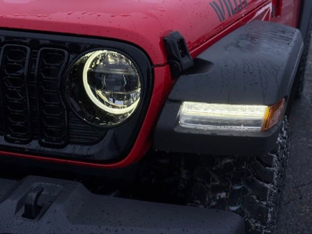 12.3" Touchscreen Display, 4-Wheel Disc Brakes, 4-Wheel Drive Swing Gate Decal, 4G LTE Wi-Fi Hot Spot, 7 and 4 Pin Wiring Harness, 8 Speakers, ABS brakes, Advanced Brake Assist, Air Conditioning, Alpine Premium Audio System, AM/FM radio: SiriusXM with 360L, Apple CarPlay, Apple CarPlay/Android Auto, Automatic Headlamps, Aux Battery, Auxiliary Switches, Black 3-Piece Hard Top, Black Grille, Brake assist, Class II Receiver Hitch, Cloth Low-Back Bucket Seats, Compass, Connectivity - US/Canada, Conventional Differential Front Axle, Corning Gorilla Glass, Dana M210 Wide HD Tube Front Axle, Dana M220 Wide Rear Axle, Daytime Running Lamps LED Accents, Deep Tint Sunscreen Windows, Delay-off headlights, Driver door bin, Driver vanity mirror, Dual front impact airbags, Dual front side impact airbags, E-Locker Rear Axle, Electronic Stability Control, Enhanced Adaptive Cruise Control, For More Info, Call 800-643-2112, Freedom Panel Storage Bag, Front anti-roll bar, Front Bucket Seats, Front Center Armrest w/Storage, Front fog lights, Front LED Fog Lamps, Front reading lights, Full Speed Forward Collision Warning Plus, Google Android Auto, Illuminated entry, Injection Molded Black Rear Bumper, Integrated Center Stack Radio, Integrated roll-over protection, Jeep Trail Rated Kit, LED Premium Reflector Headlamps, Low tire pressure warning, Mold in Color Bumper with Gloss Black, Molded in Color Rubicon Highline Flare, MOPAR All-Weather Floor Mats, Myflexcare Service Plan, Non-Lock Fuel Cap Without Discriminator, Normal Duty Suspension, Occupant sensing airbag, Off-Road Plus Mode, Outside temperature display, Overhead airbag, Panic alarm, ParkView Rear Back-Up Camera, Passenger door bin, Passenger vanity mirror, Power Heated Mirrors, Power steering, Power windows, Premium Wrapped Steering Wheel, Quick Order Package 24W Willys, Radio data system, Radio: Uconnect 5 with 12.3" Display, Rear anti-roll bar, Rear reading lights, Rear Window Defroster, Rear Window Wiper/Washer, Remote keyless entry, Security Alarm, SiriusXM Radio Service, SiriusXM with 360L, Speed control, Split folding rear seat, Steering wheel mounted audio controls, Stop-Start Dual Battery System, Sun Visors with Illuminated Vanity Mirrors, Tachometer, Telescoping steering wheel, Tilt steering wheel, Traction control, Trailer Tow and Auxiliary Switch Group, Trip computer, Variably intermittent wipers, Wheels: 17" x 7.5" Black Steel Styled, Wheels: 17" x 7.5" Painted Black, Willy's Suspension, Willys Hood Decal. 18/23 City/Highway MPG