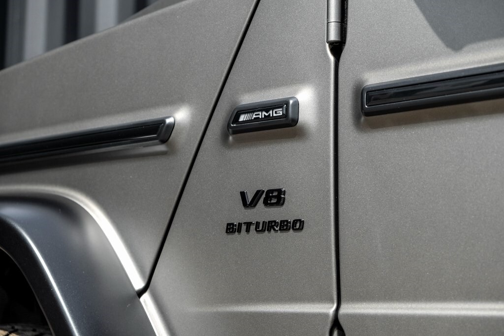 Grey 2025 Mercedes-Benz G-Class G 63 AMG® 4MATIC® 4MATIC® 9-Speed Automatic V8 AMG Performance steering wheel in carbon-fiber design /Microfiber, MANUFAKTUR roof painted in night black magno, MANUFAKTUR Logo Package in black, Rubber mat set, MANUFAKTUR Full Leather Package, Trim element in the grab handle with "MANUFAKTUR" lettering, AMG LED Projectors, AMG® Night Package (P56), Brush Guard in Black, Dash Cam, Drive-Dynamic Multicontour Front Seats w/Massage, ENERGIZING Package Plus, Exterior Mirrors Painted in Obsidian Black, Front Ventilated Seats, MANUFAKTUR Interior Package Plus, MANUFAKTUR Interior Package Plus (P77), Rapid Heating Front Seats, Seat Comfort Package, Spare Wheel Cover in Obsidian Black, Underguard in Obsidian Black.