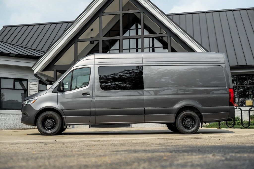 Grey 2025 Mercedes-Benz Sprinter 2500 High Roof RWD 9-Speed Automatic 2.0L 4-Cylinder Diesel Turbocharged DOHC Mounting rails for roof rack, Digital rear-view mirror, 16" x 6.5J Steel Wheels, 2 Additional Master Keys, 3-Seater Comfort Bench Rear, 1st Row (Narrow), Acoustic Package, Active Distance Assist DISTRONIC®, ATTENTION ASSIST®, Chrome Grille Package, Chrome Plated Radiator Grille, Co-Driver Comfort Head Restraint, Co-Driver's Seat Lumbar Support, Comfort Overhead Control Panel, Comfort Package, Comfort Plus Package w/Heated Steering Wheel, Convenience Head Restraints for Pass. Compartment, Crew Van Comfort Package, Driver Comfort Head Restraint, Driver Convenience Package, Driver Seat Base 12V Power Outlet, Driver's Seat Lumbar Support, Electrically Adjustable Co-Driver's Seat, Electrically Adjustable Driver's Seat, Electrically Folding Exterior Mirrors, Exterior Lighting Package, Heated Front Passenger Seat, Heated Steering Wheel, High Beam Assist, Hinged Lid for Left & Right Storage Compartments, Hinged Lid for Storage Compartment, Instrument Panel Front-to-Rear Outlet, Intelligent Navigation, Leather Steering Wheel, LED High Performance Headlamps, MBUX Navigation, MBUX Package, Navigation, Partial LED Tail Lights, Pre-Installation for Navigation, Pre-Installation Map Update, Radio: MBUX Multimedia System w/10.25" Touchscreen, Rain sensing wipers, Smartphone Integration Package, Wet Wiper System, Winter Package Plus.