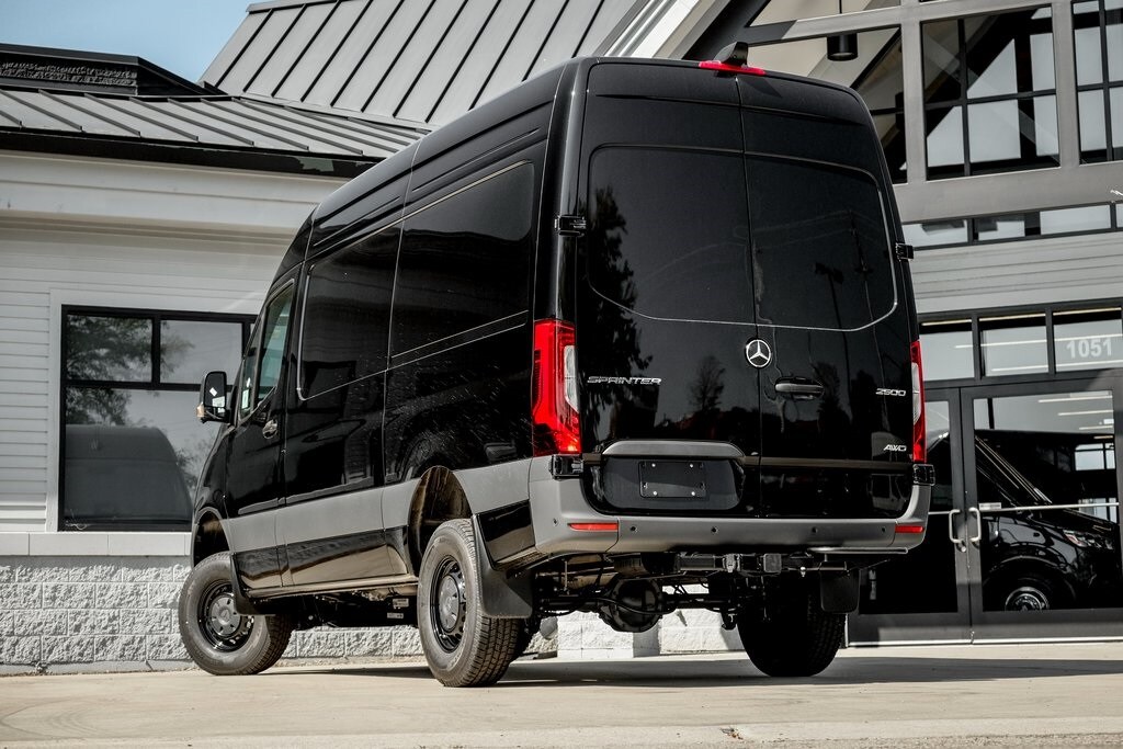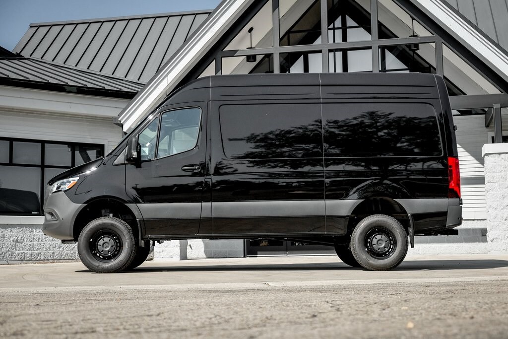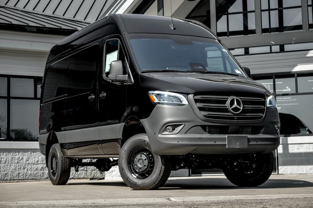Jet Black 2025 Mercedes-Benz Sprinter 2500 Cargo 144 WB 4MATIC® 4MATIC® 9-Speed Automatic HO 2 Additional Master Keys, Acoustic Package, Active Distance Assist DISTRONIC®, Active Lane Keeping Assist, Additional Alternator Front Engine Bracket, All Wheel Drive Package, ATTENTION ASSIST®, Auxiliary Fuel Sending Unit w/Fuel Tap, Blind Spot Assist, Co-Driver Comfort Head Restraint, Co-Driver's Seat Lumbar Support, Comfort Overhead Control Panel, Comfort Package, Comfort Plus Package, Digital Rearview Mirror, Drive Assist Package, Driver Comfort Head Restraint, Driver Convenience Package, Driver Seat Base 12V Power Outlet, Driver's Seat Lumbar Support, Driver's Seat Swivel Base, Electrically Adjustable Co-Driver's Seat, Electrically Adjustable Driver's Seat, Electrically Folding Exterior Mirrors, Exterior Lighting Package, Fog Lamp w/Cornering Light Function, Front Passenger's Seat Swivel Base, Heated Front Passenger Seat, High Beam Assist, High Roof, Hinged Lid for Left & Right Storage Compartments, Hinged Lid for Storage Compartment, Instrument Panel Front-to-Rear Outlet, Intelligent Navigation, LED High Performance Headlamps, Low Driver's Seat Frame, Low Passenger's Seat Frame, MBUX Multimedia 6-Hour Runtime, MBUX Navigation, MBUX Package, Navigation, Optimized Fuel Gauge for Aux Fuel Tap, Parametric Special Module (PSM), Parking Package, Partial LED Tail Lights, Pre-Installation for Navigation, Pre-Installation Map Update, Radio: MBUX Multimedia System w/10.25" Touchscreen, RV Technical Bundle, Sideguard Assist, Smartphone Integration Package, Swivel Seat Package, Wet Wiper System, Winterpaket.